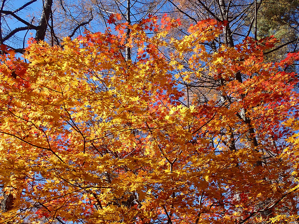 合流する登山道を少し下ってから登り返します。この辺りはもみじだらけです。