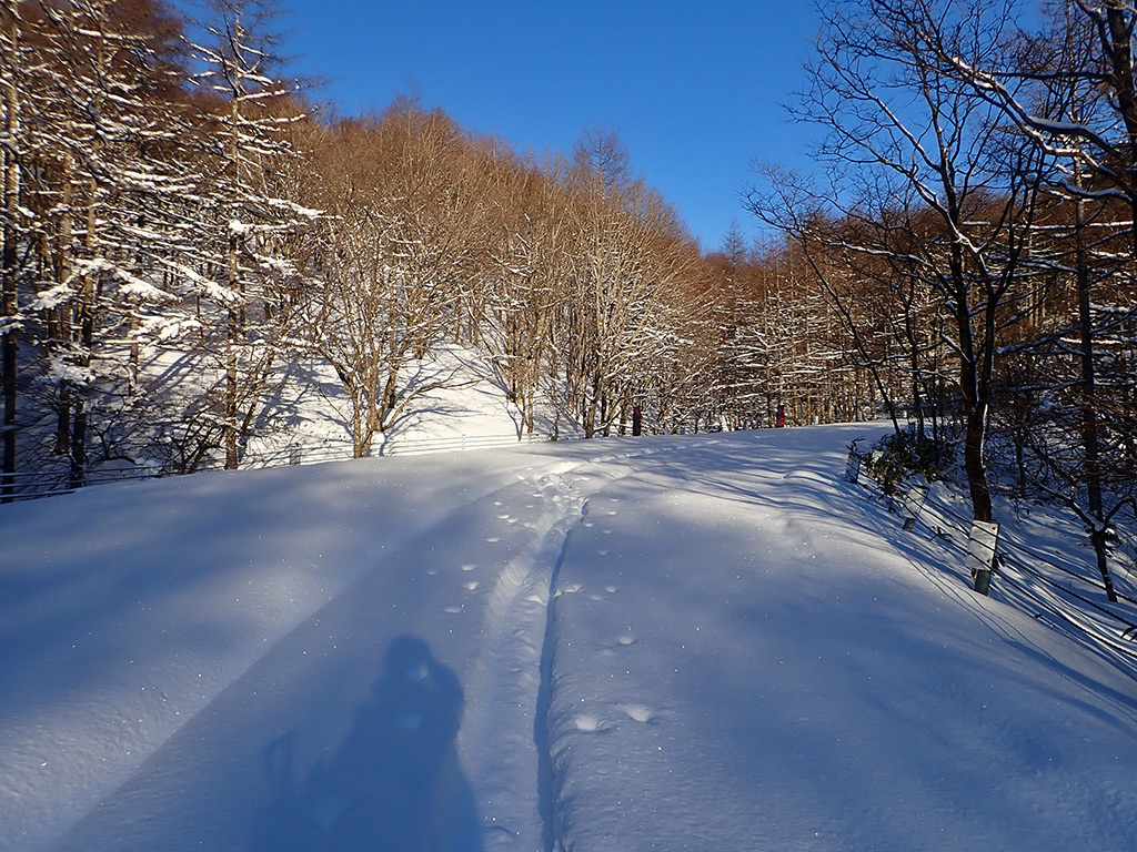 道路にトレースがあることを確認。でないとビーナスラインの下りが下りラッセルになってしまいますので。