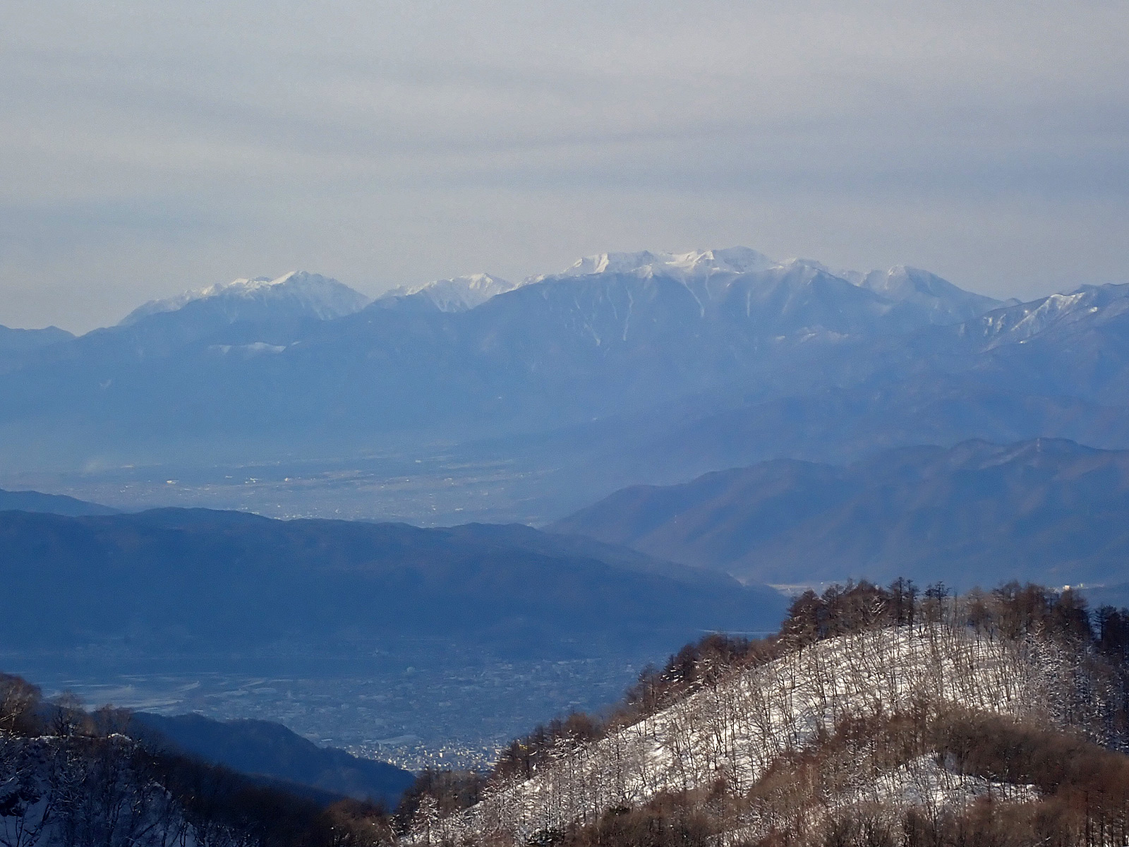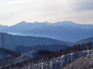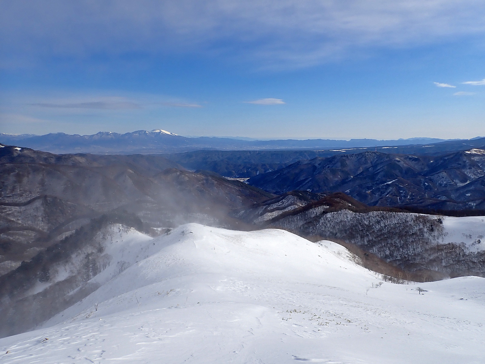 8時48分、稜線に到着。西から強風が吹き付けています。北アルプスも雪雲がかかり始めています。
