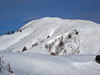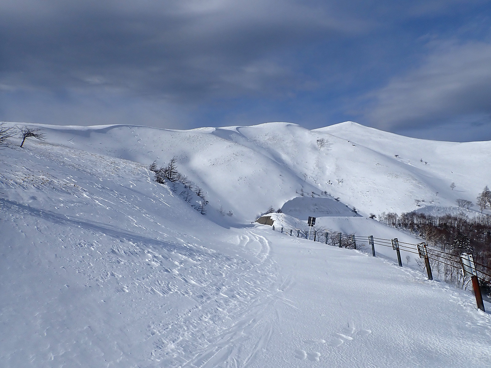 山頂と東斜面。最初にここを滑りました。私のシュプールはうっすら。