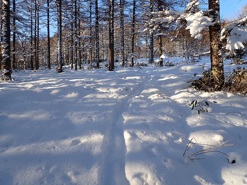 あれれ、すぐに登山者は引き返したようです。私のスキーだと10cmほどしか沈ます機動力は抜群です。