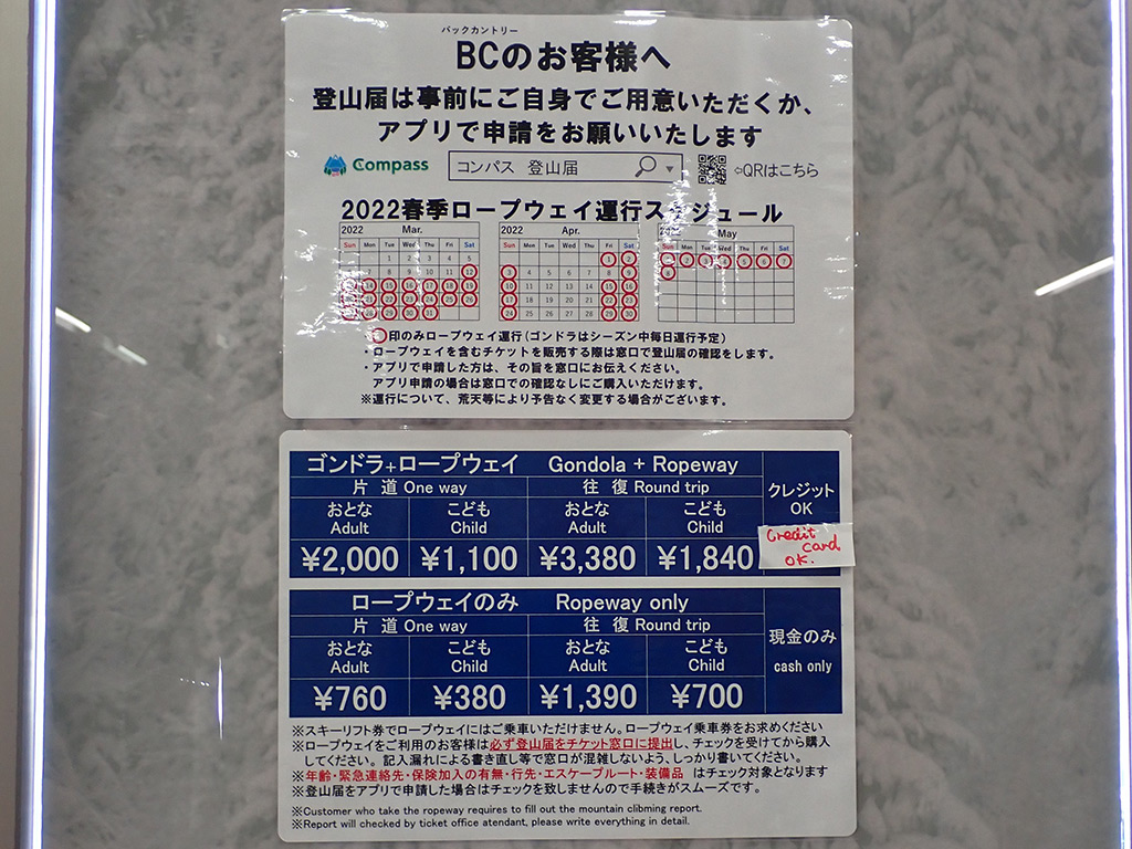 早々にゴンドラ乗り場にスキー板で場所取りをしてから、チケット売場に並びます。
