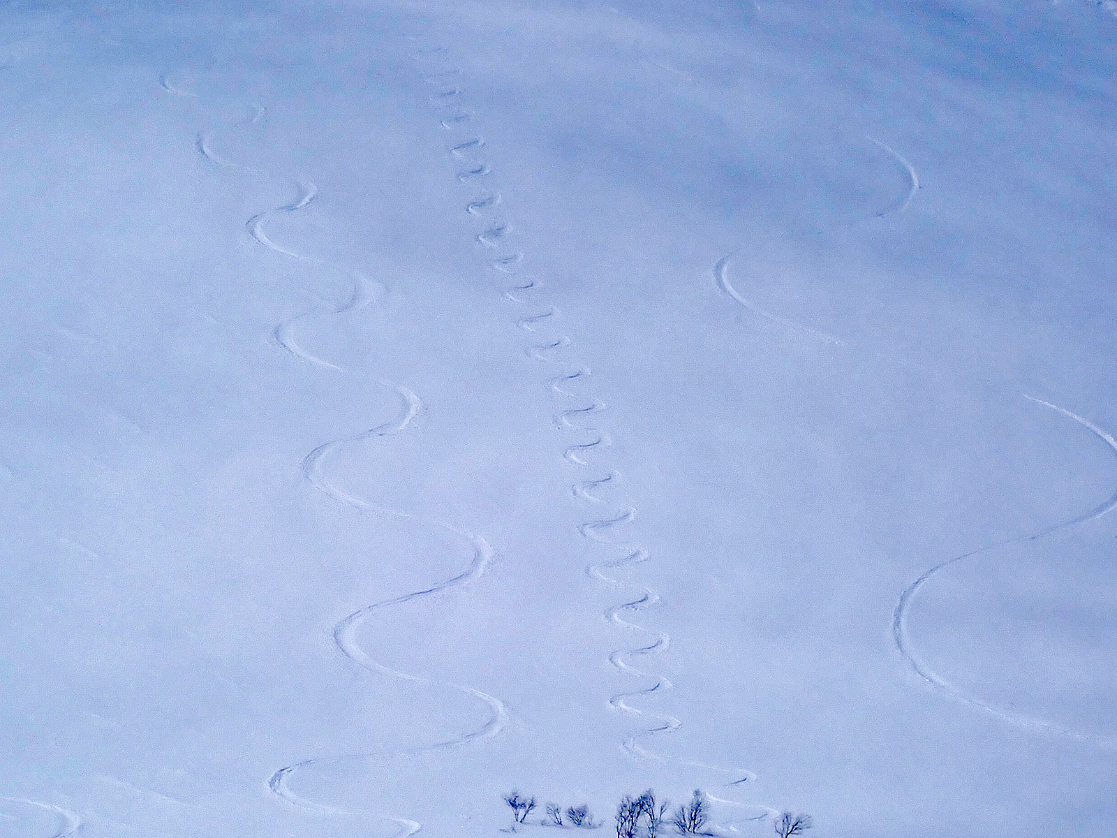 右側。こちら側は昨日のシュプールが埋まりきっていない感じです。