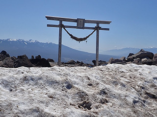 鳥居の下の雪は溶けましたが、手前の吹き溜まりはまだ残っています。