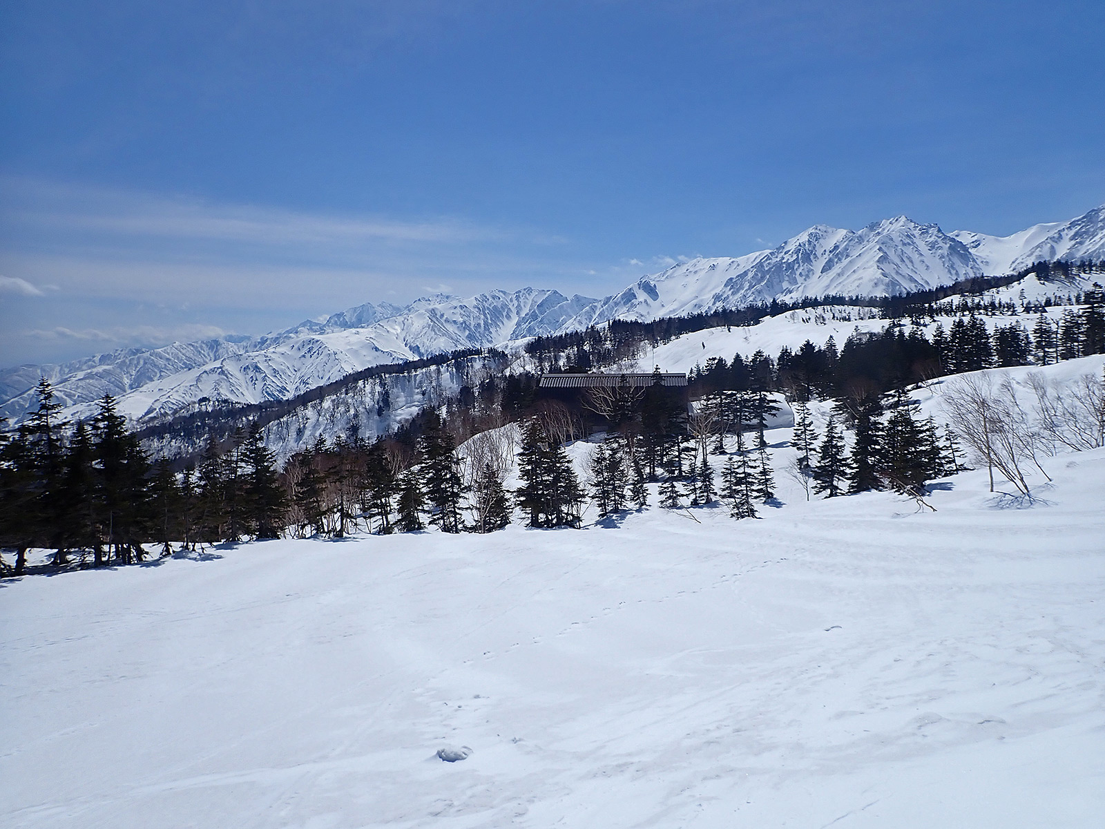 白馬乗鞍岳。積雪はまだたっぷりですが、雪の状態はあまり良く無さそうです。今日はここまでとします。