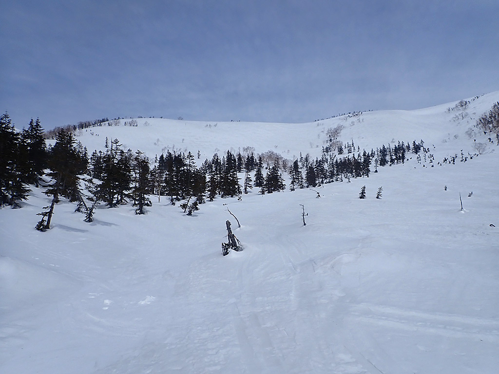 日差しで緩まないとこの斜度はちょっと怖いなあ。
