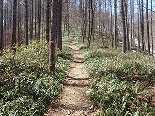稜線の登山道には残雪はありませんが、脇に少しだけ残雪。