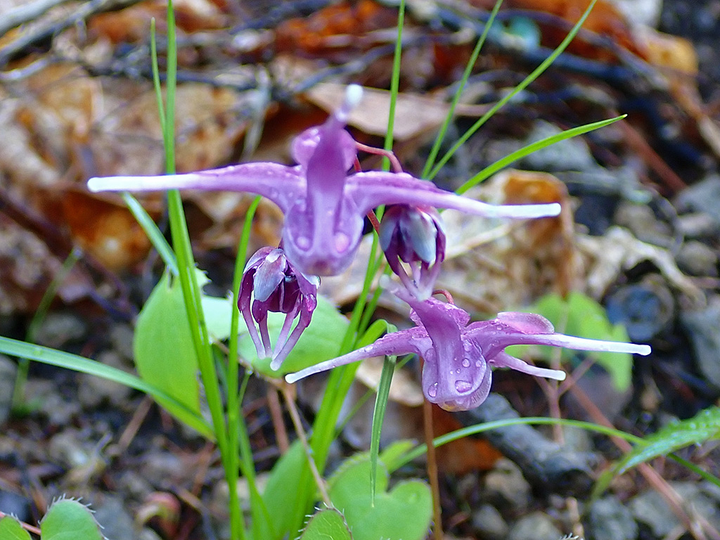 イカリソウもあちこちで咲いています。この時間はまだ日が届いていないので、帰りに撮影したものをあとで載せます。