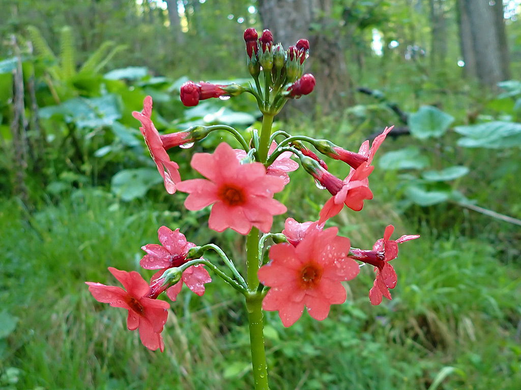 分杭平の柵で囲まれた植物園の中にクリンソウの群落がありました。ここでこんなに咲いているとは。