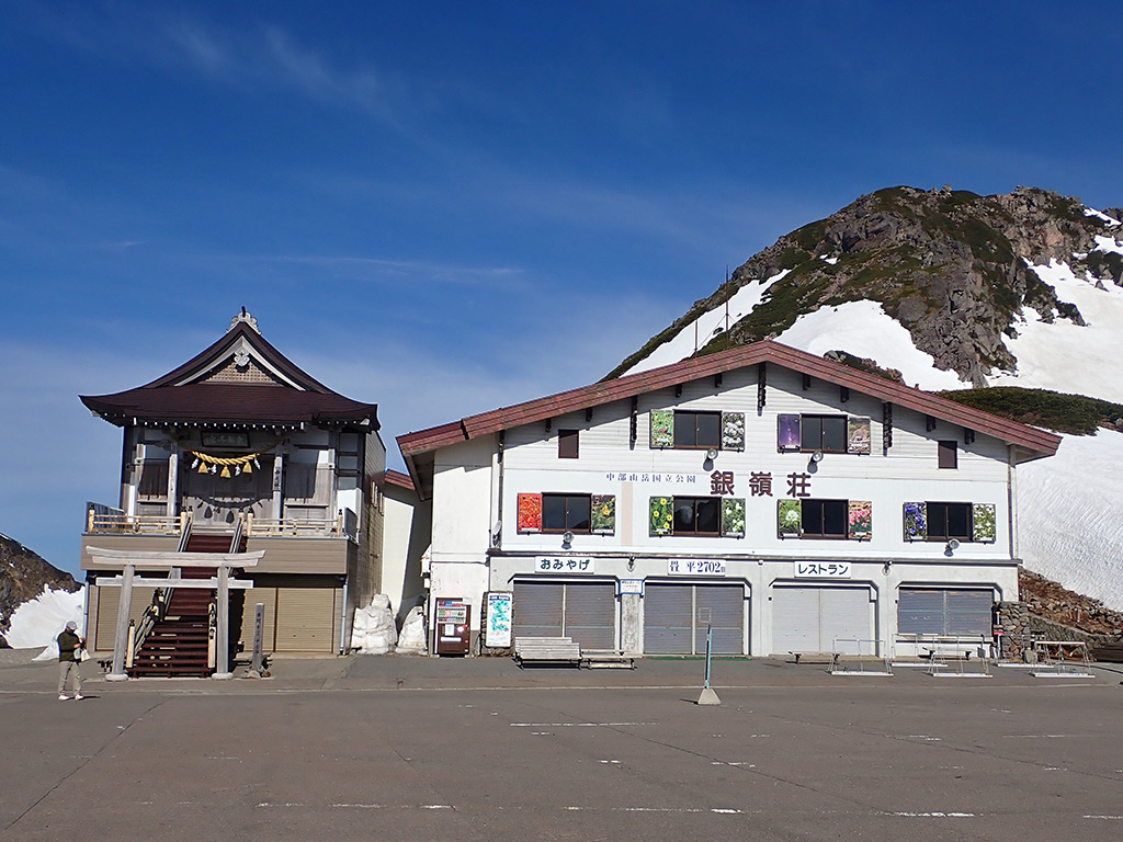 頂上小屋はまだ半分ほど雪に埋もれています。