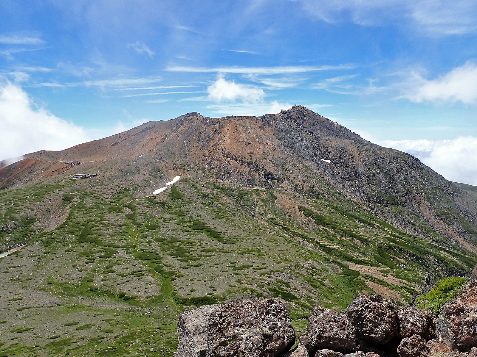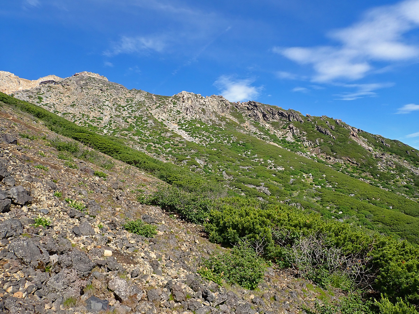 剣ヶ峰を振り返ります。今日は最高の登山日和になりました。