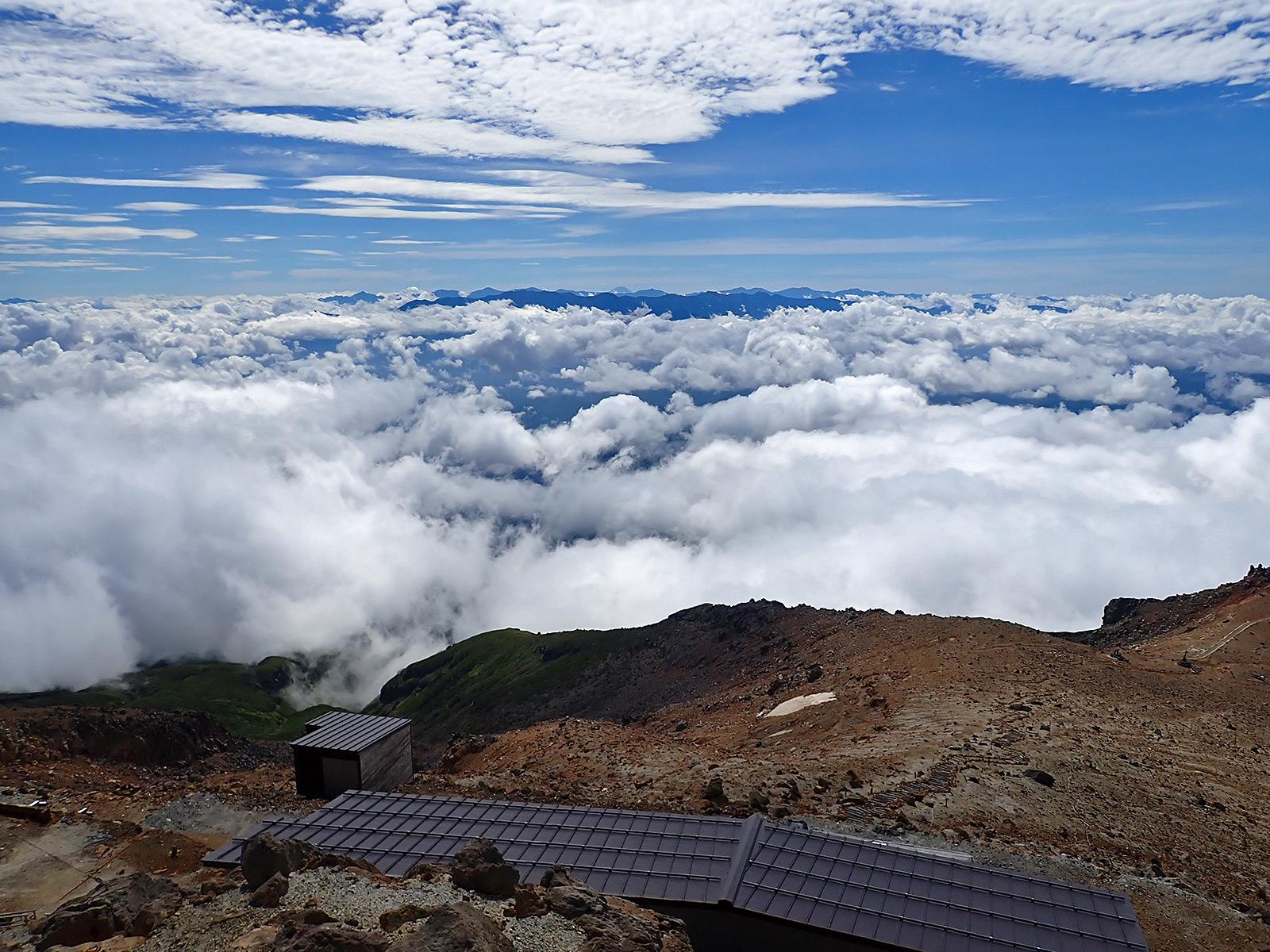 乗鞍岳、笠岳、槍穂高。その後間もなくガスに包まれてしまいましたが。