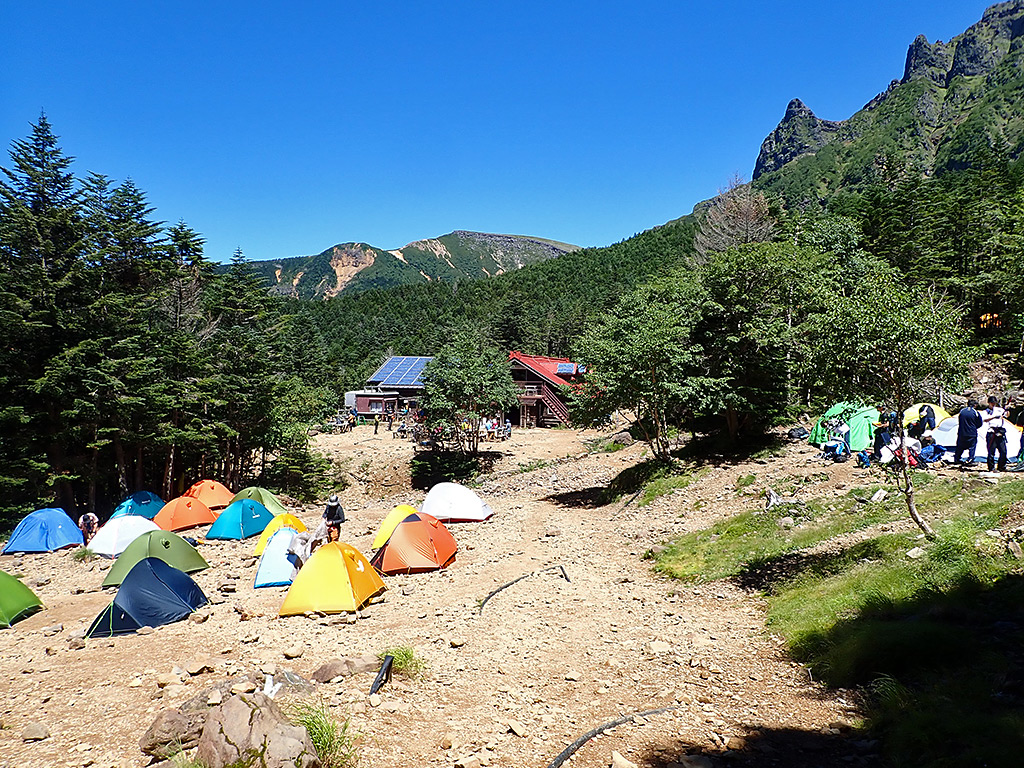 11時39分、行者小屋まで下ってきました。キャンプの人で賑わっています。