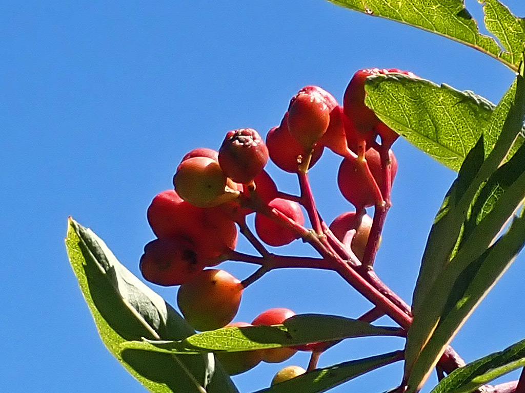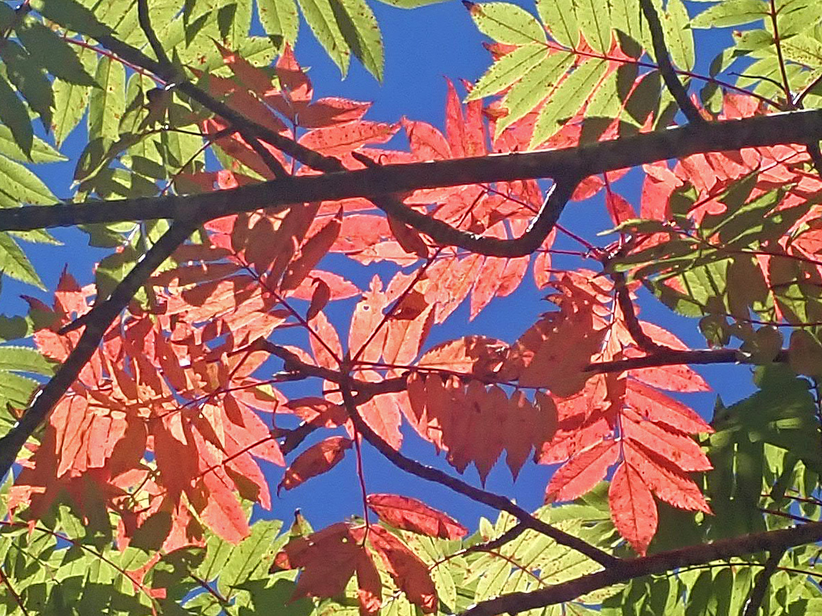 ここからは行者小屋から下っていく途中で撮影したものです。ナナカマドの紅葉。まだごく部です。
