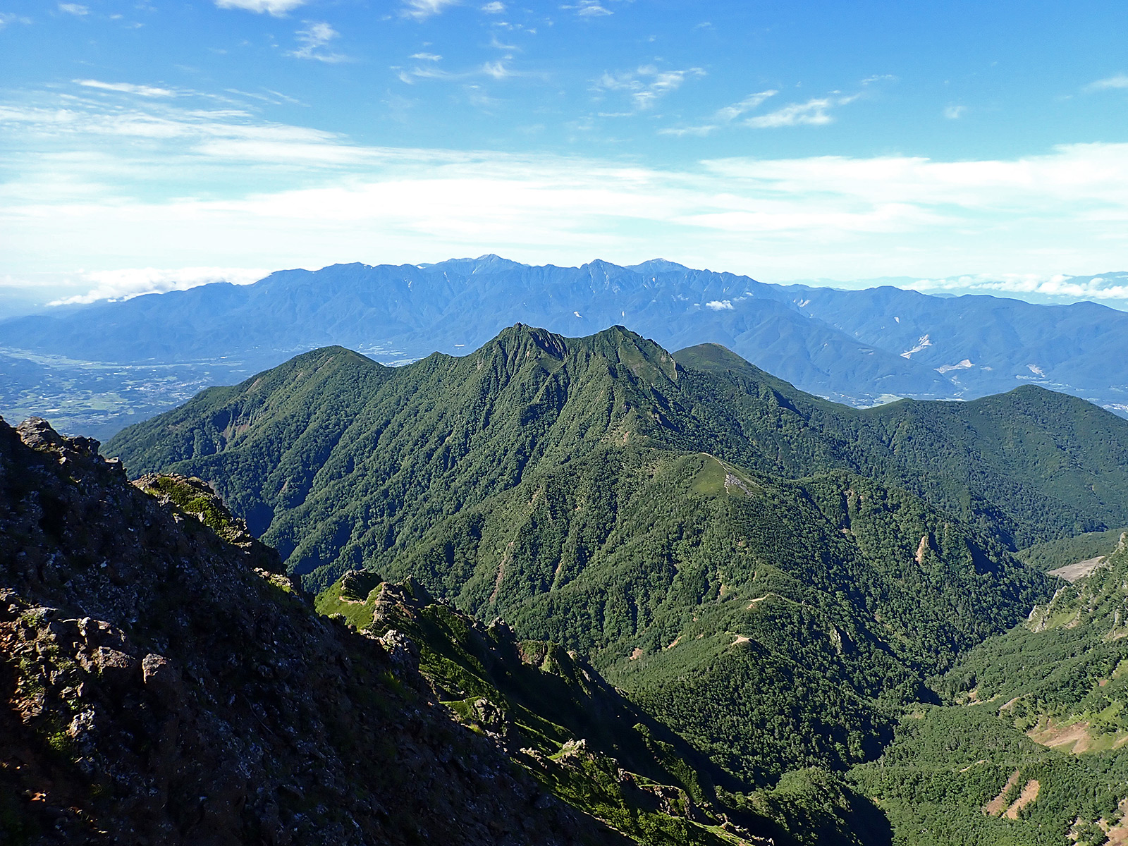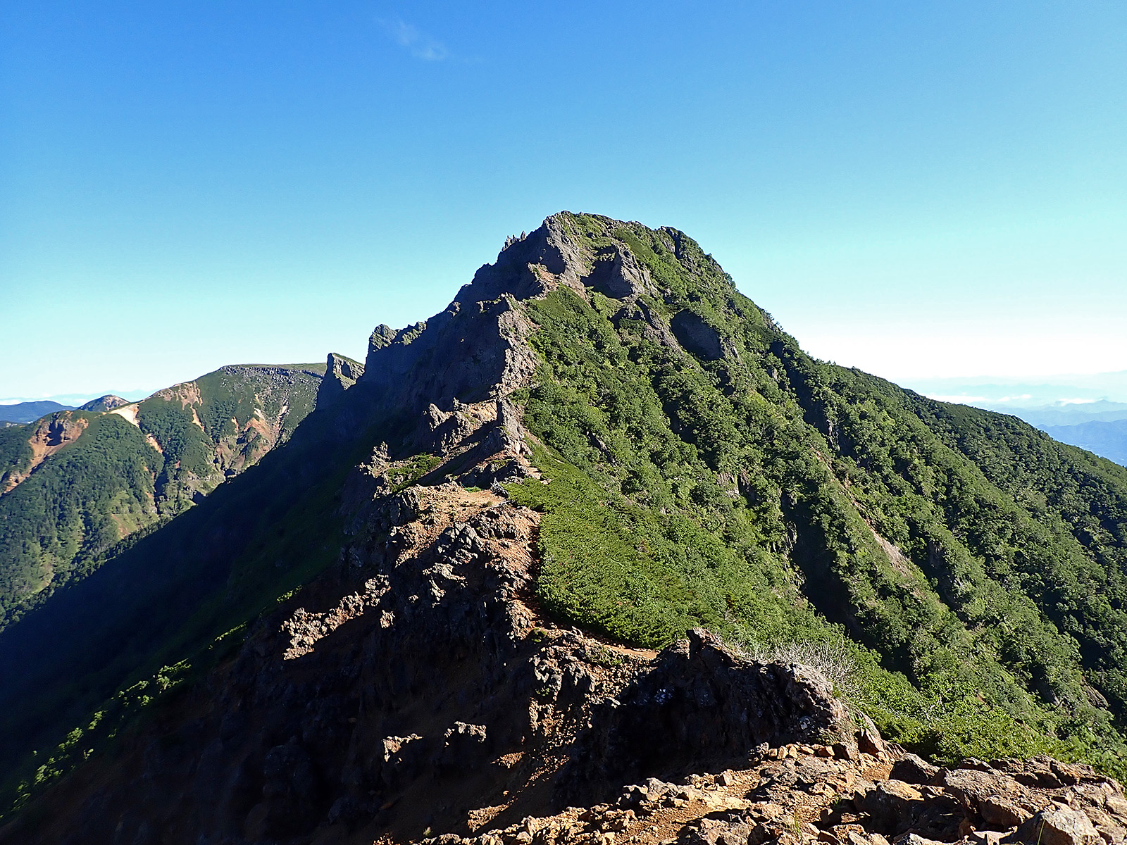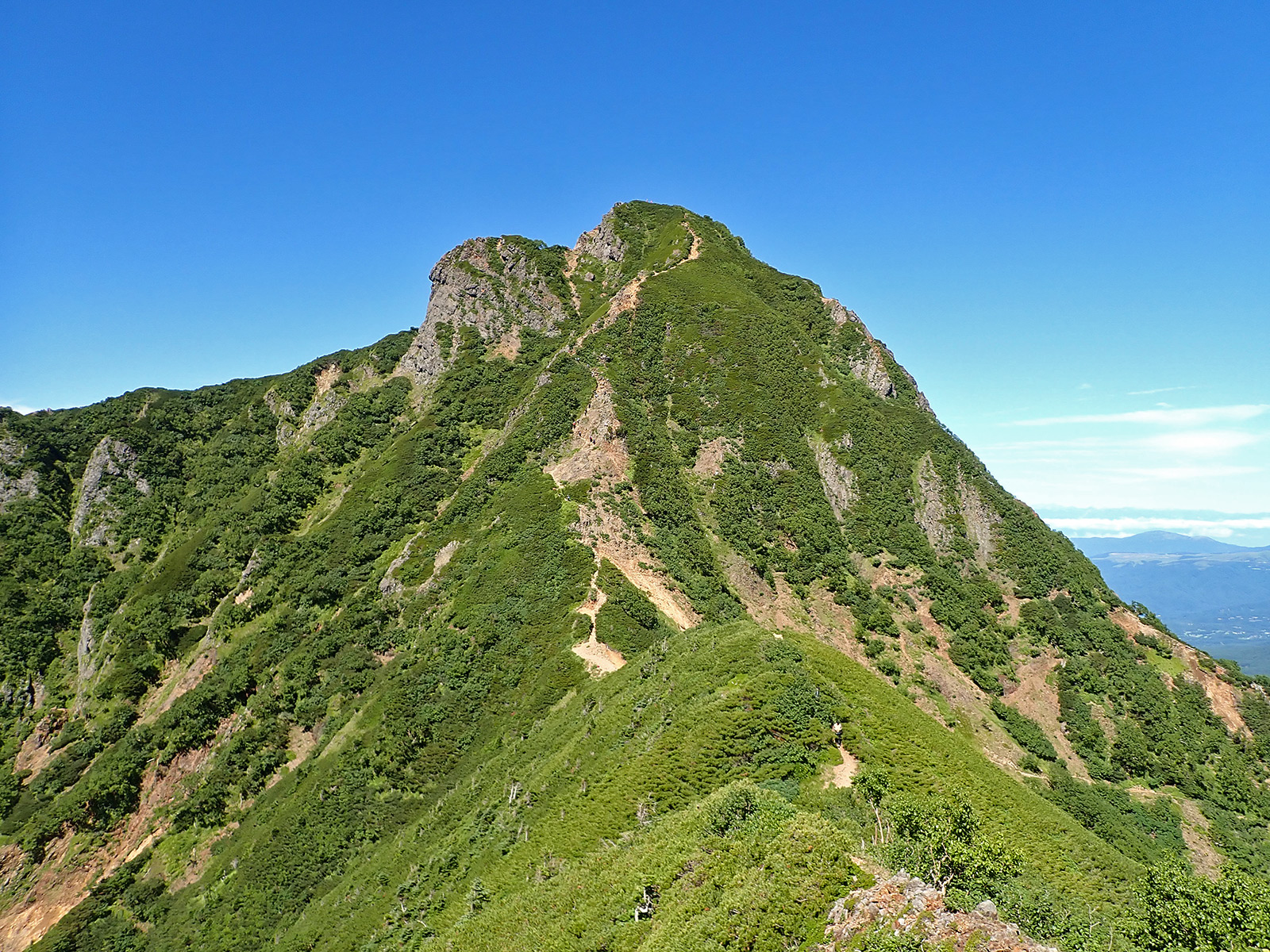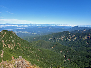 北面。いつか冬季にこの斜面を滑ってみたいと思いつつ、問題は最後落ち込んでいった先です。