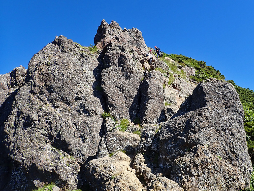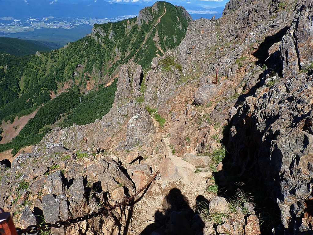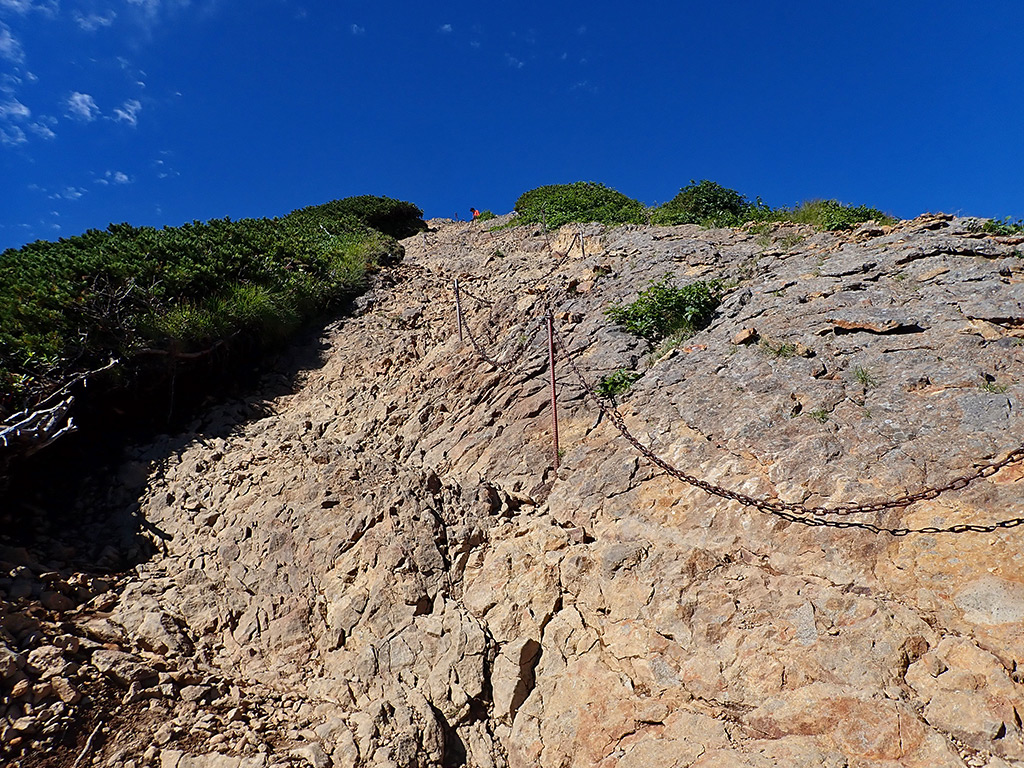 鎖場。このルートは東面なので風が当たらず、背中に強い日差しを受けてとにかく暑いです。