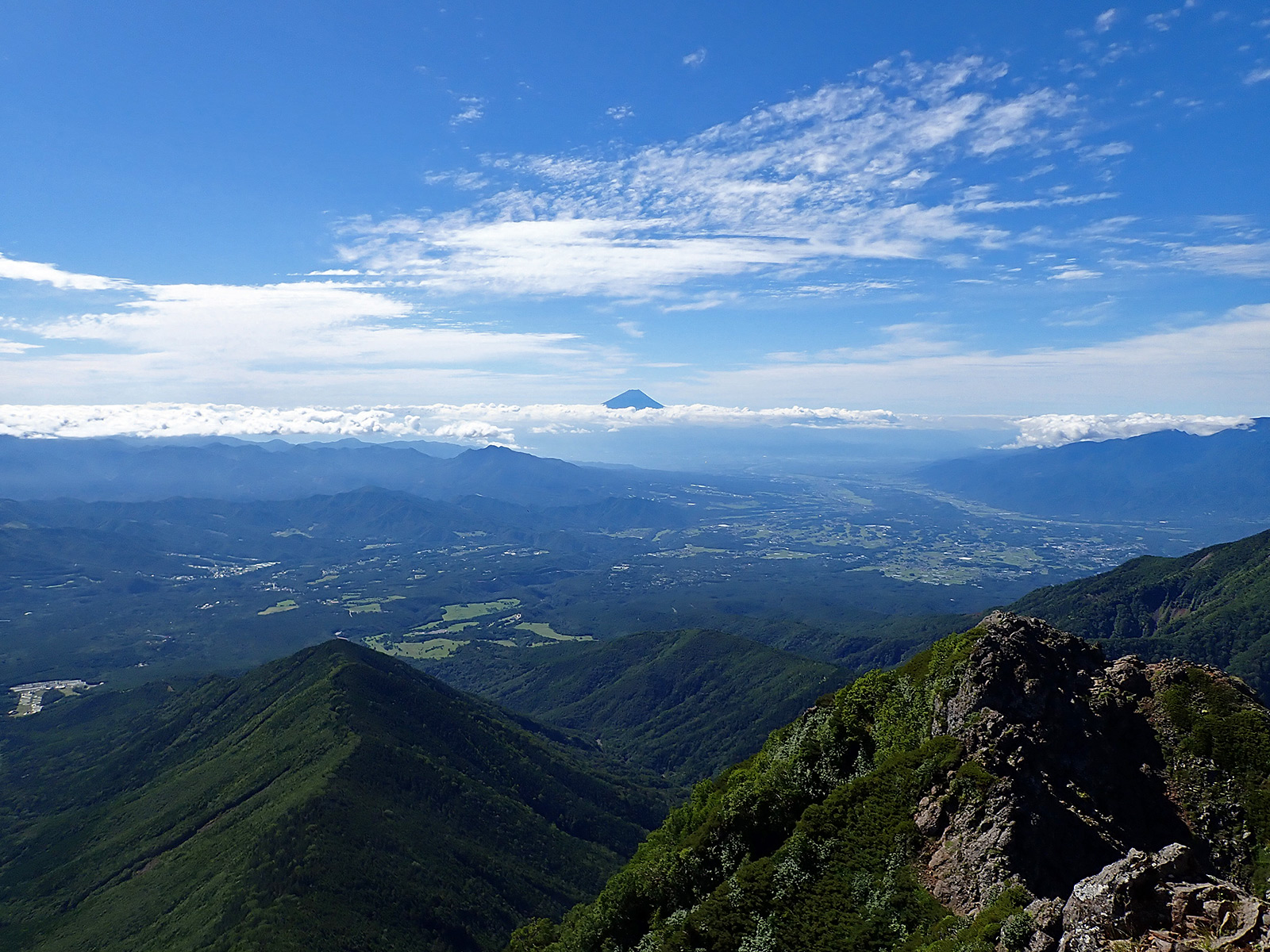 反対側も絶景。奥秩父方面は雲海が広がっています。