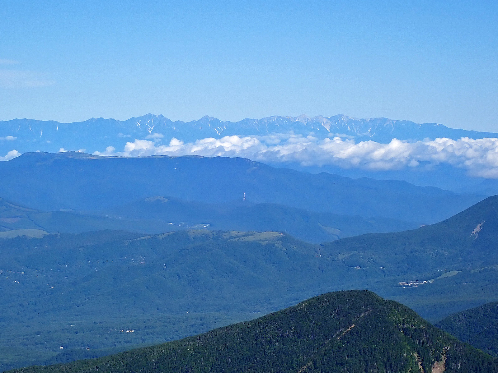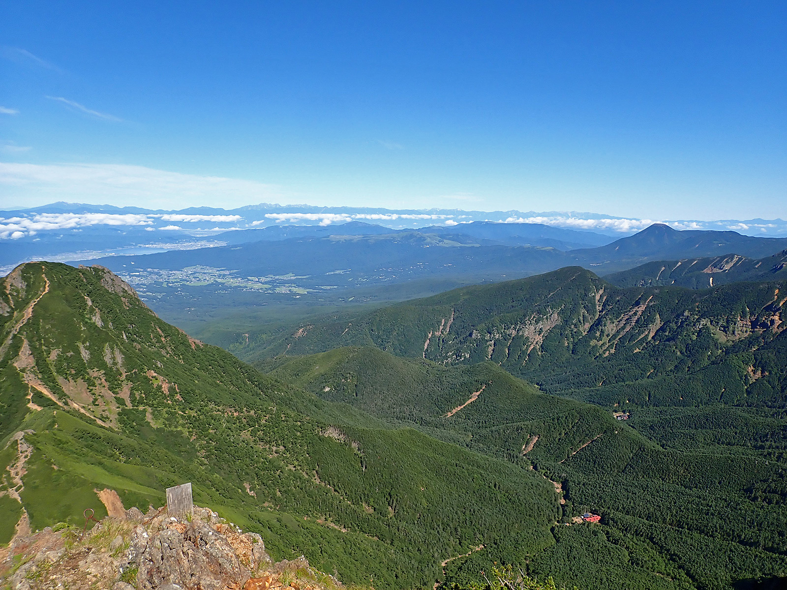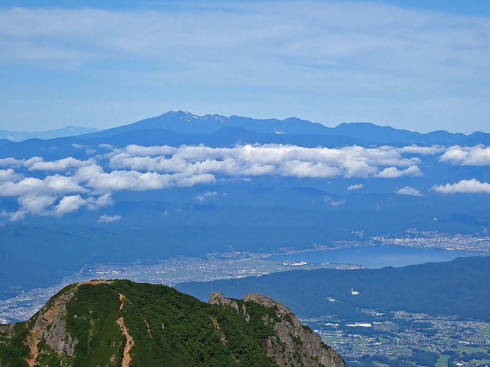赤岳からは見えなかった茅野市の市街地が見えます。
