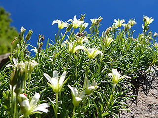 このところぱっとしない天気が続いていましたが、この日は久しぶりに快晴が期待できたことから、この夏是非登りたいと思っていた赤岳に出かけてきました。赤岳の西側斜面あるいは中岳の東斜面にコマクサが咲いているのですが、少し時期は遅いですがまだ残っていて欲しいと期待していましたが、中岳にほぼ見頃と言えるコマクサが一株残っていて良かったです(^^)。そのほかの花もだいぶ減りましたが、特に阿弥陀岳に登る登山道の周囲には多くの種類の花が咲いていて楽しめました。