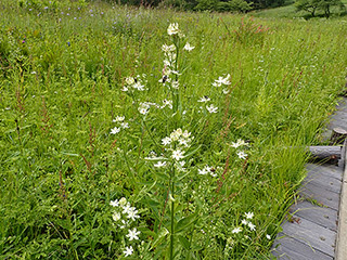 斜面を拡大すると白い花を付けたアケボノソウが湿原に沢山咲いています。今年はアケボノソウの当たり年では。