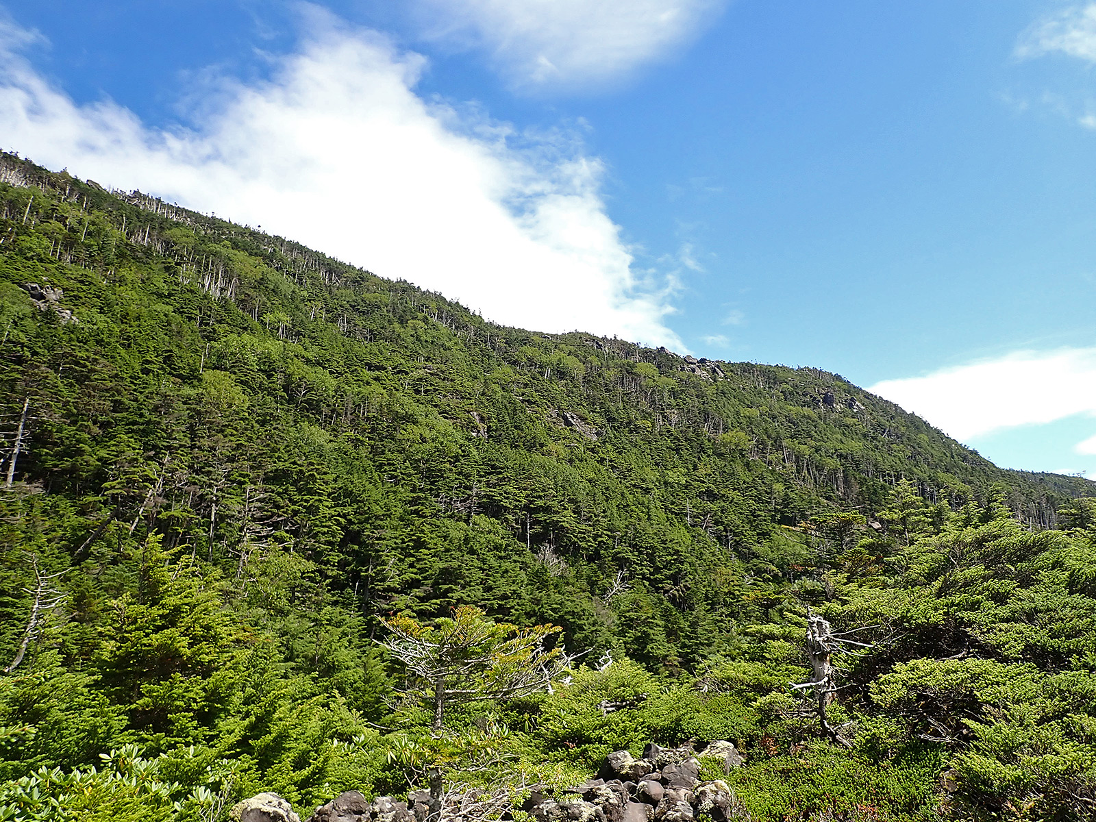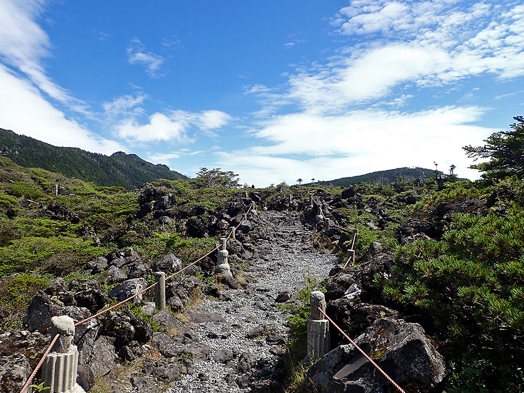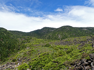 坪庭と縞枯山。