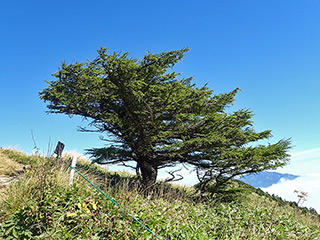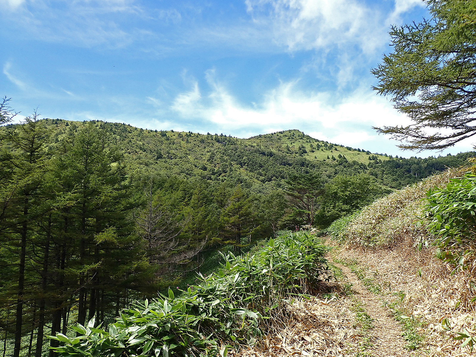 青空をバックに湯の丸山がきれいに見える予定でした(^^;。