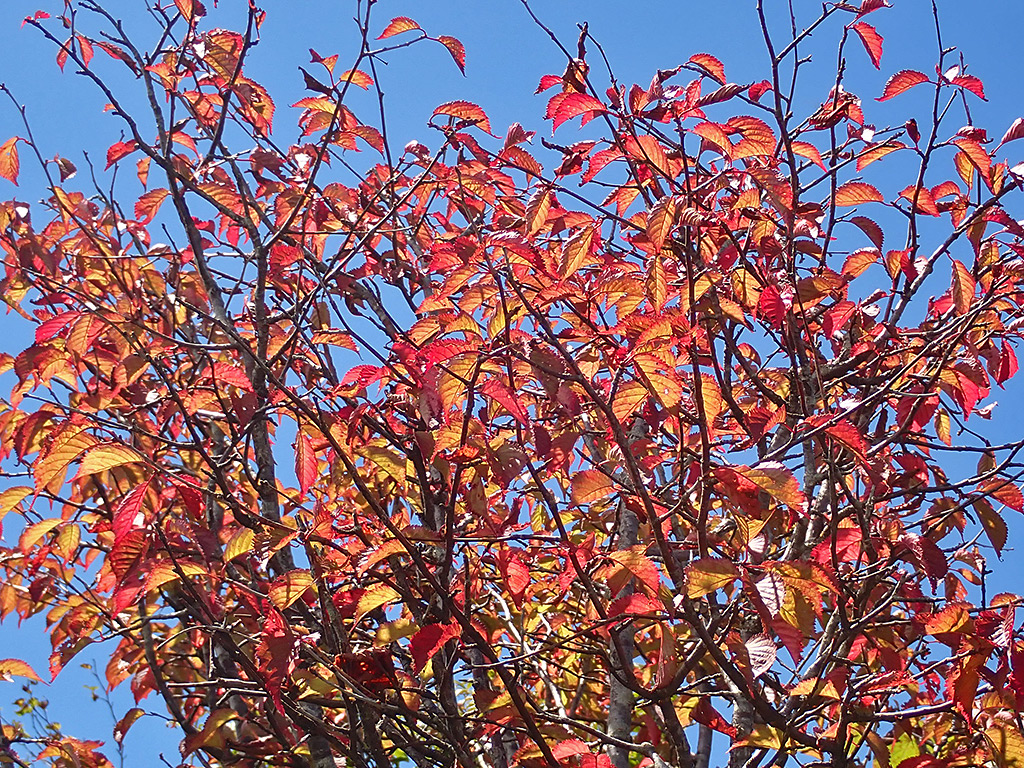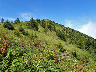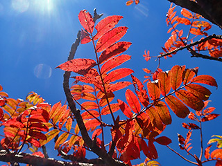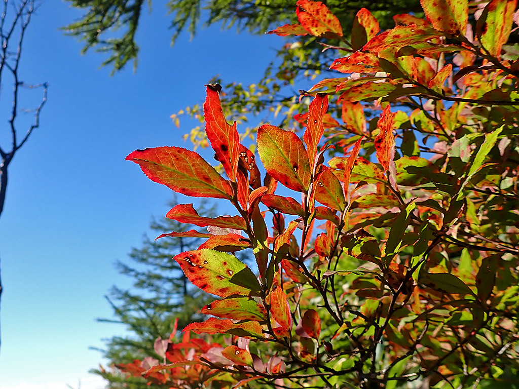 では南峰に戻ります。途中のナナカマドは一部で真っ赤。