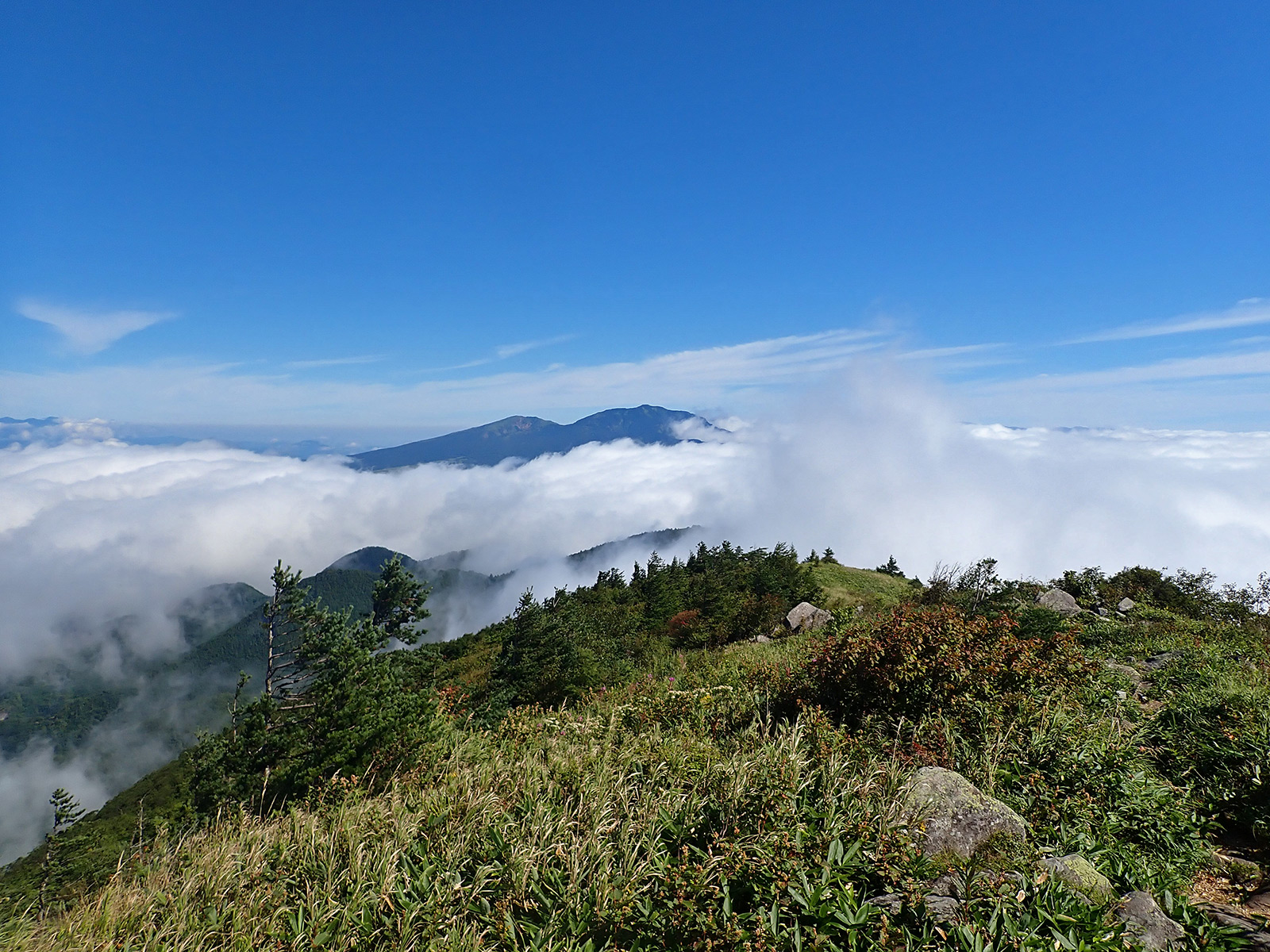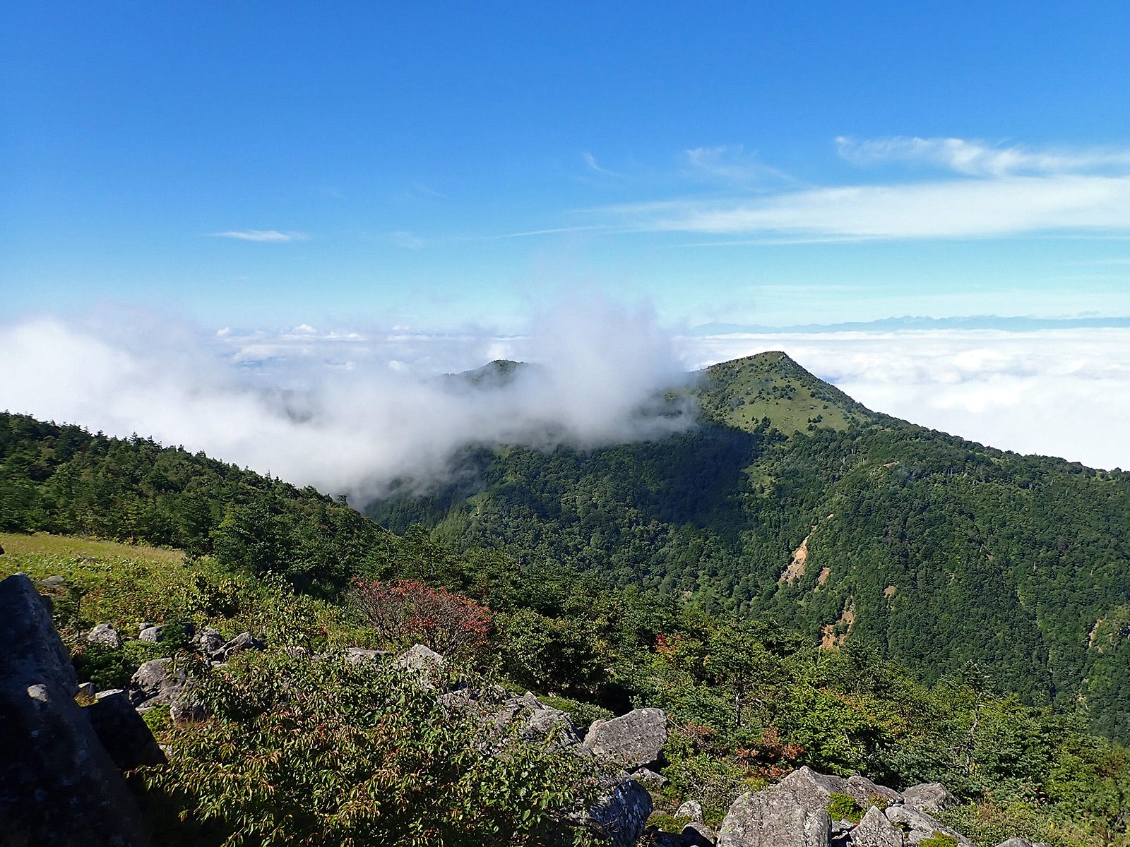 そういえば春以降、まだ湯の丸山を訪れていませんでしたので、花が咲いている内にぜひ訪れたいと思い、晴れが期待できたこの日、出かけてきました。地蔵峠は真っ白でしたが、つつじ平をすぎて湯の丸山に登り始めたら雲海の上に出て、それからは青空ハイクを楽しむことが出来ました。花も夏から秋の花を沢山楽しむことが出来ましたが、やっぱりここは花が多いところだと改めて感動しました。今回は紅葉もごく一部で始まっていて、プチ紅葉も楽しめました。