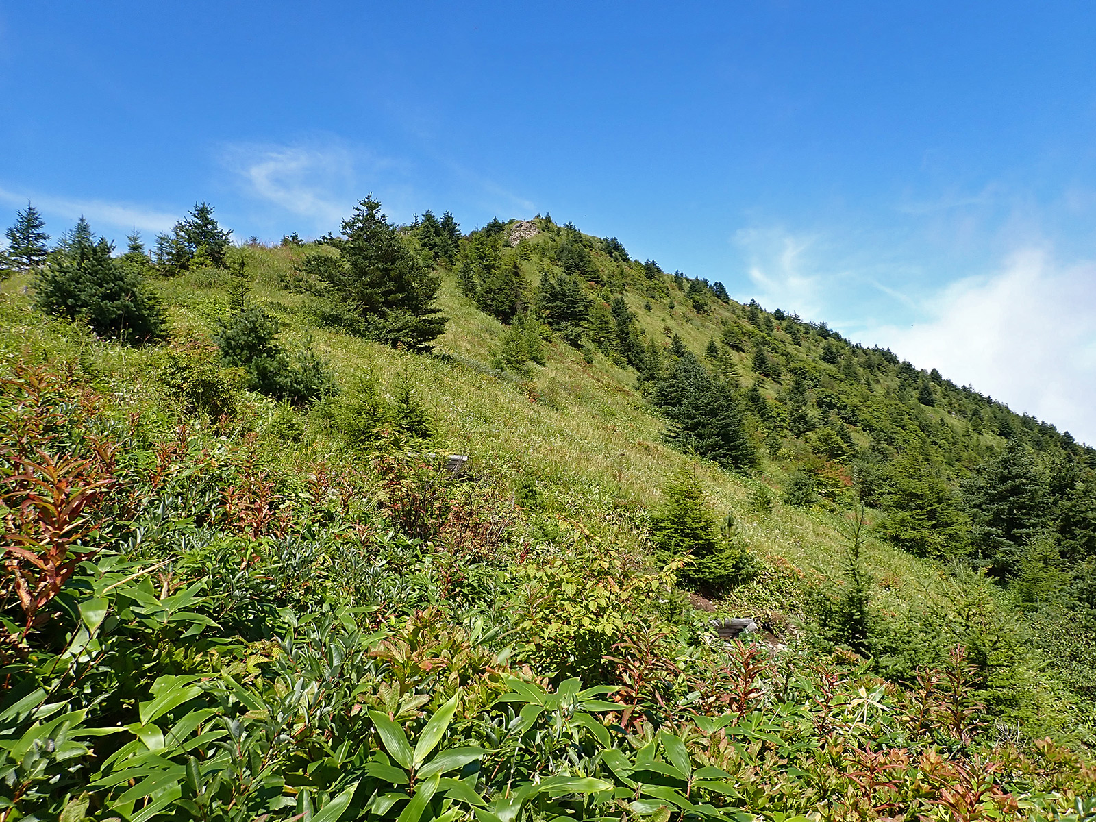 トラバース気味に登って行きますが、ここは風が無く強い日差しで猛烈に暑かったです。
