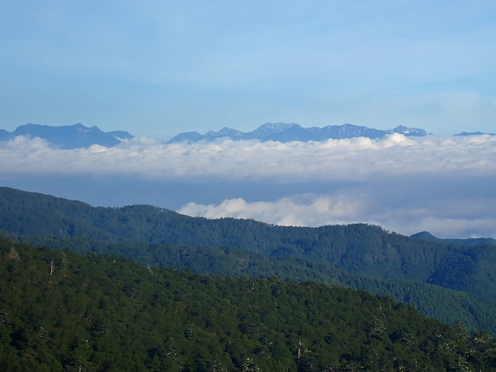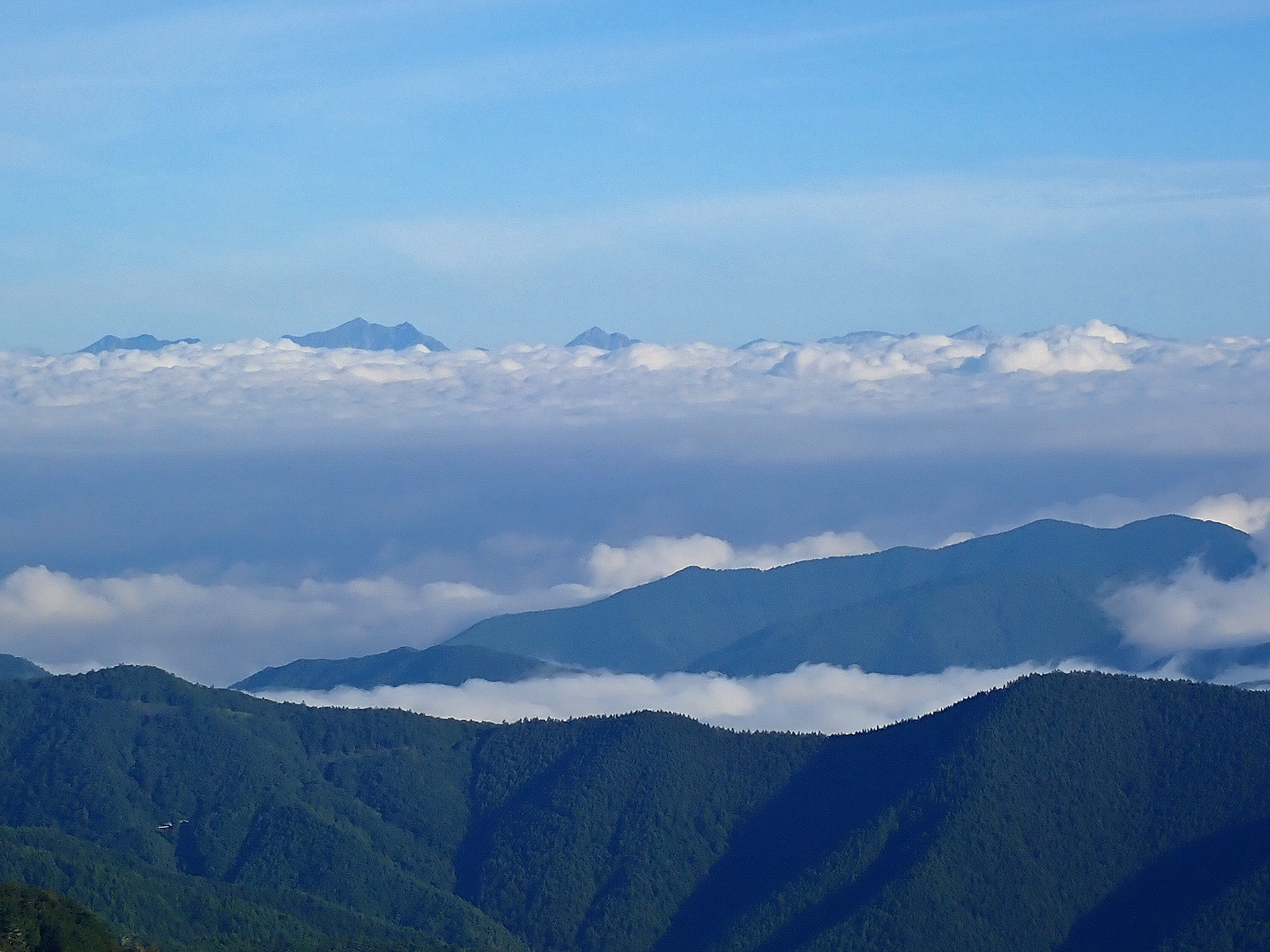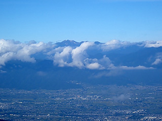 南アルプスは山頂だけ見えています。左端にもしかして富士山も山頂だけみえているのか?。