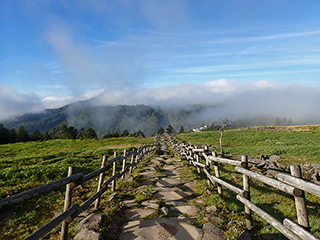 自宅を5時30分に出発し、霧ヶ峰経由で美ヶ原に向かいます。そして6時28分、山本小屋ふる里館前の無料駐車場に到着。駐車場。ここに来るまで霧ヶ峰は真っ白、美ヶ原手前から快晴になりました。