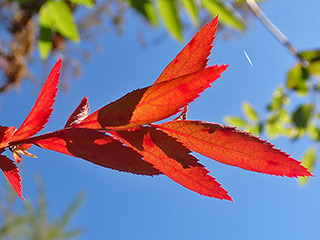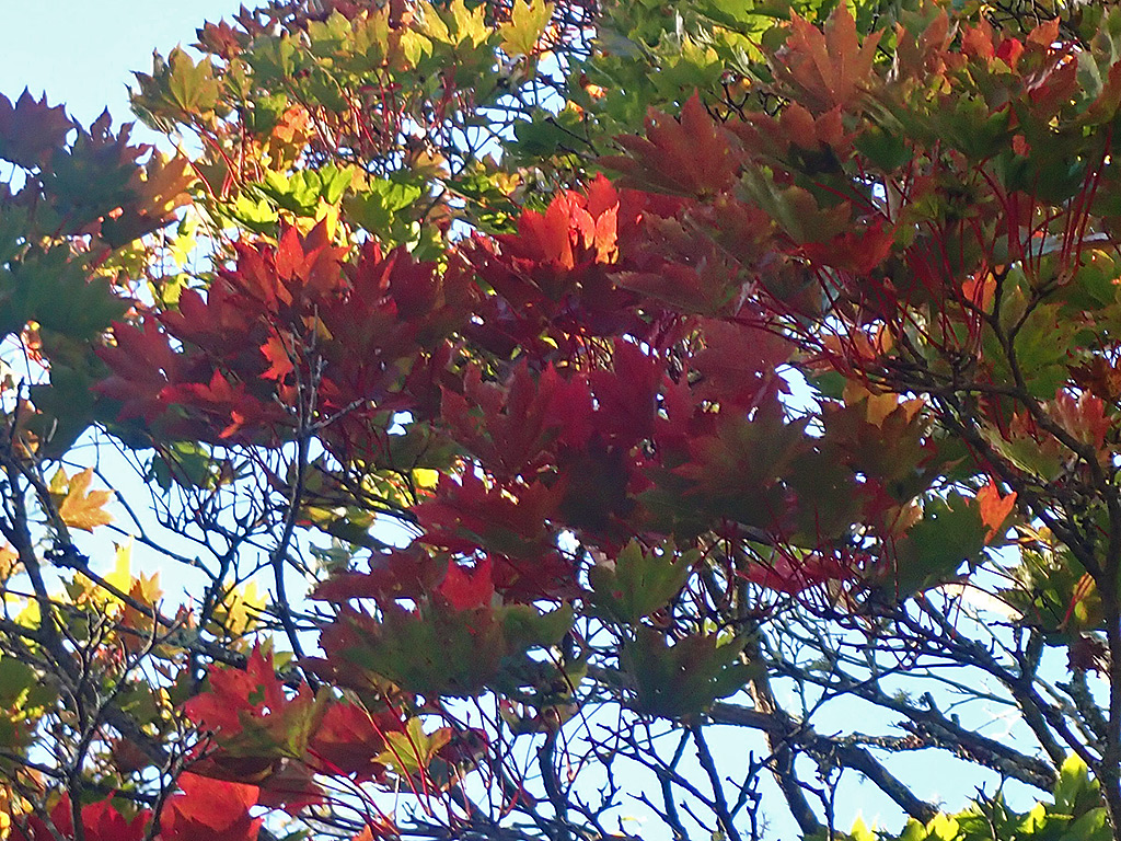 ここからは車で下っていきながら撮影したもの。一部ですが、真っ赤に染まったもみじ。