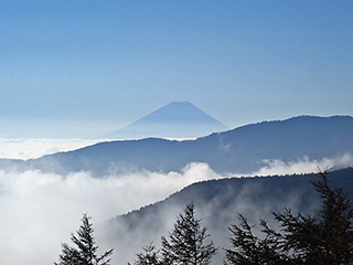 奥秩父方面。一面の雲海。遠くに金峰山が見えています。