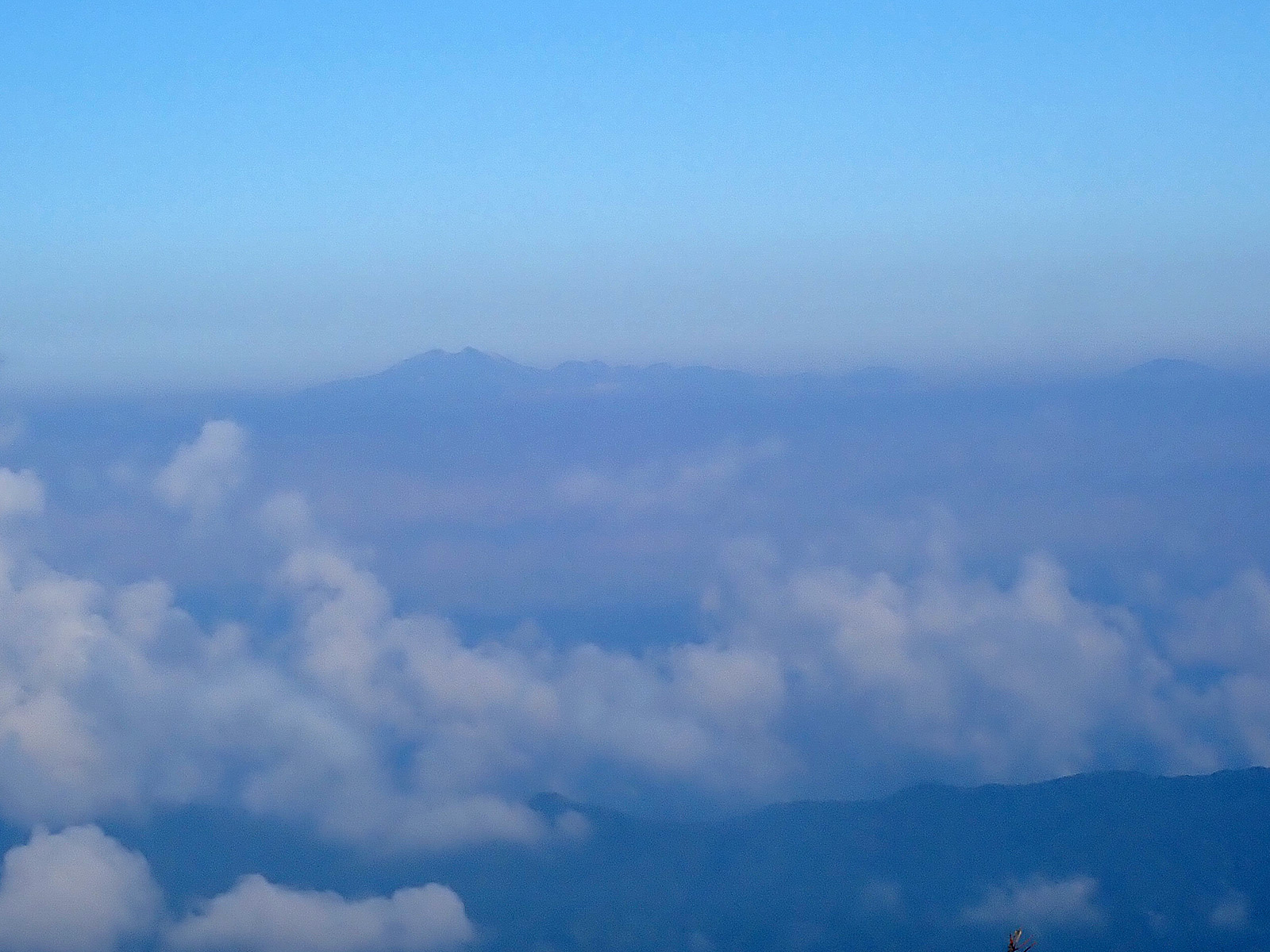 向かう途中ずっと曇りで、それでも途中で雲海の上に出るだろうと向かいましたが、結局御所平についてもまだ真っ白(^^;。登って行く途中でやっと雲海の上に出て、山頂からは見事な雲海を眺めることが出来ました。