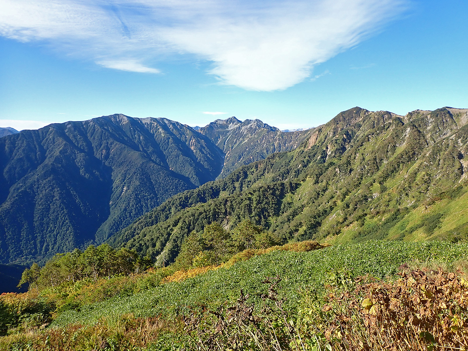 稜線に出ると剣岳、鹿島槍などがきれいに見えています。