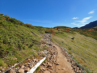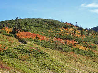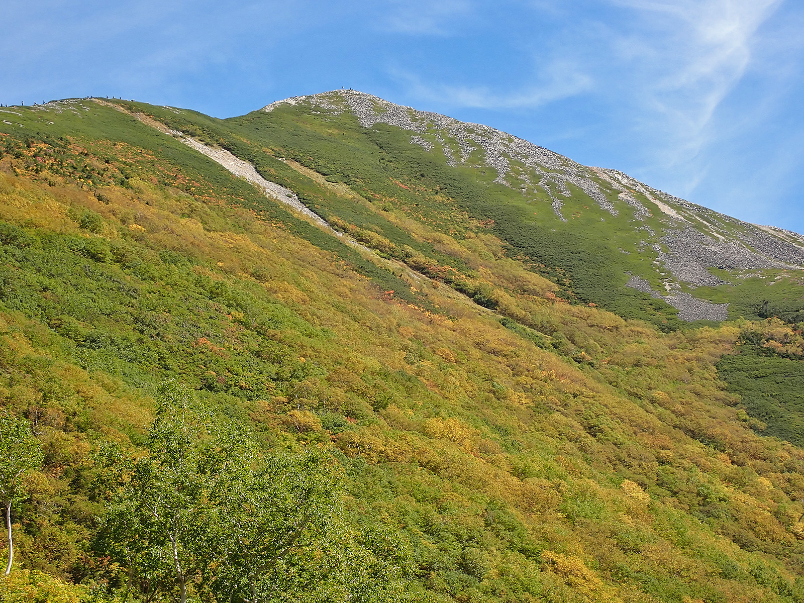 稜線直下。この辺りのナナカマドはまだ黄色。