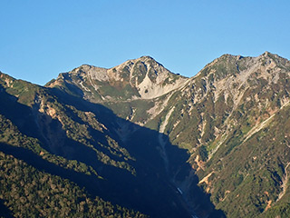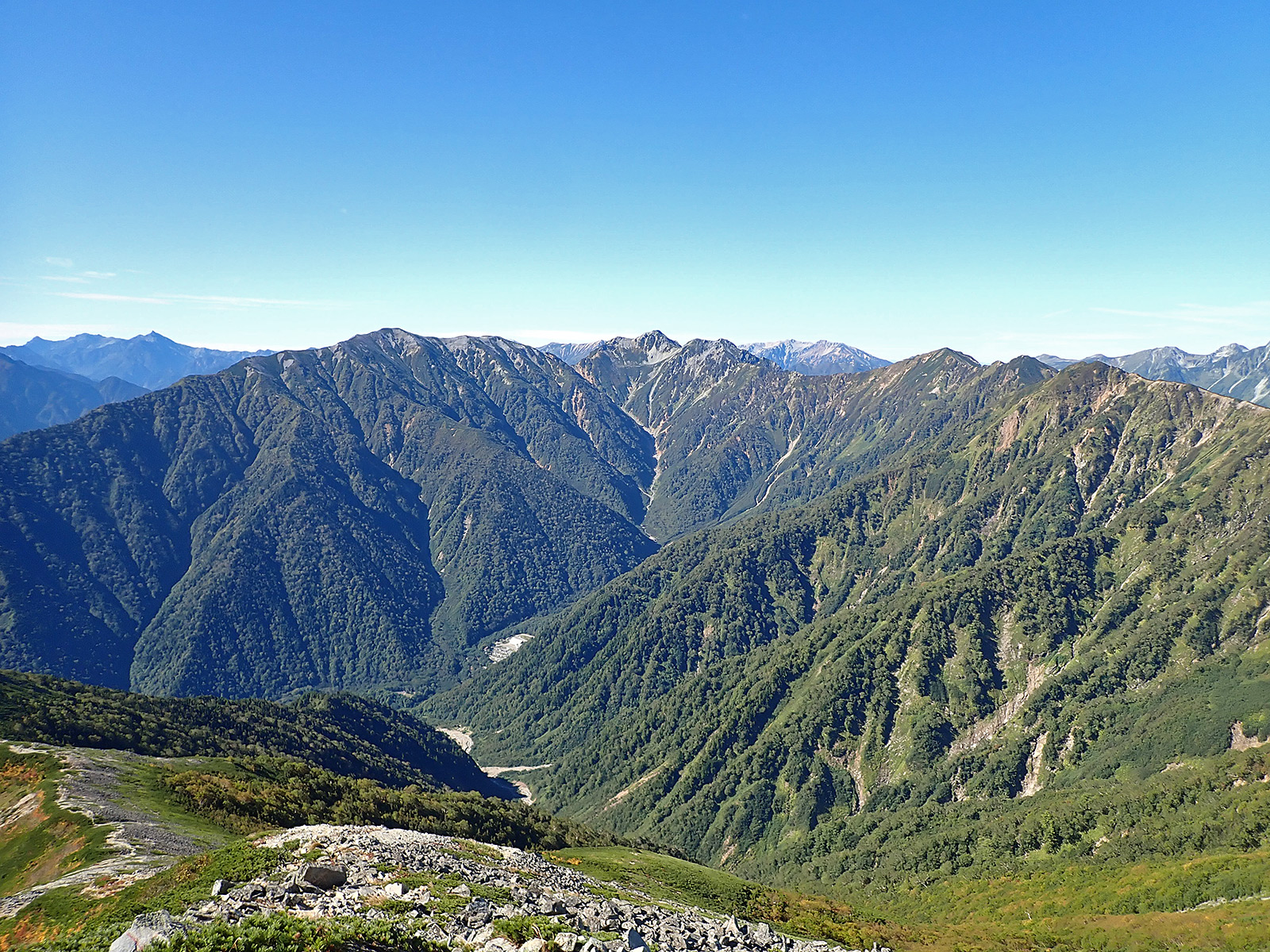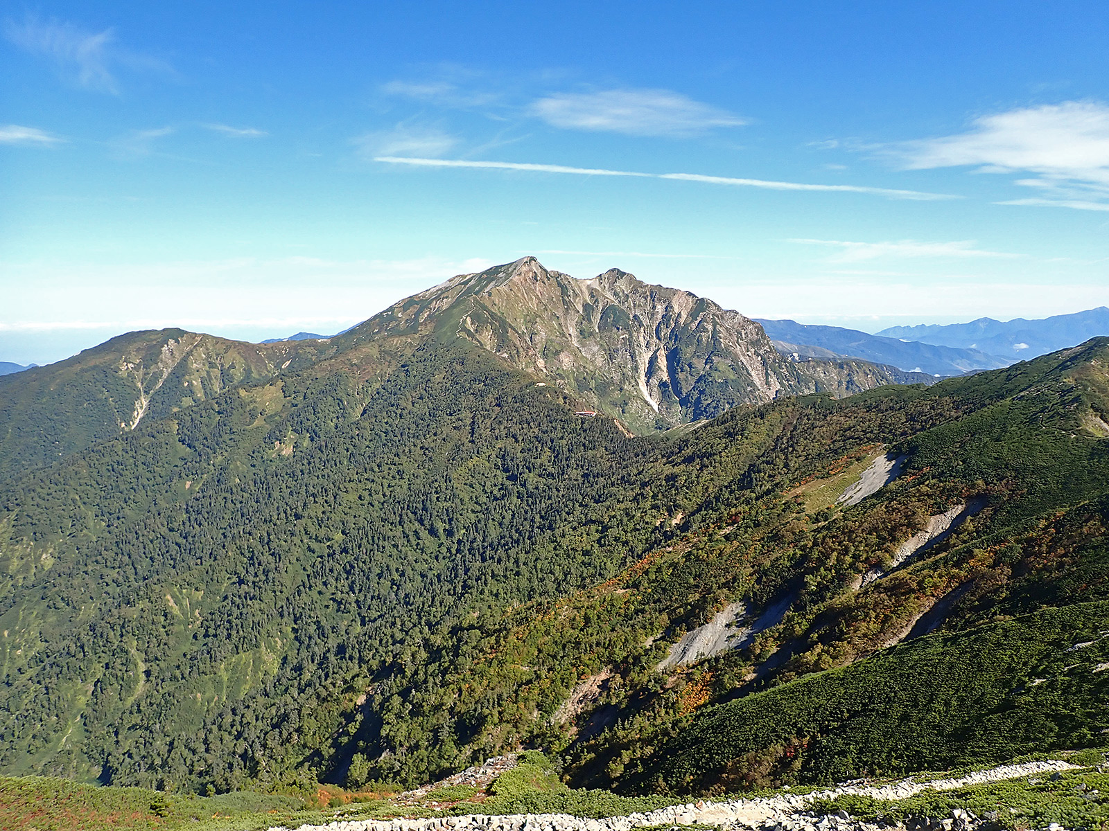 途中の展望ポイントから針ノ木岳。素晴らしい天気です。