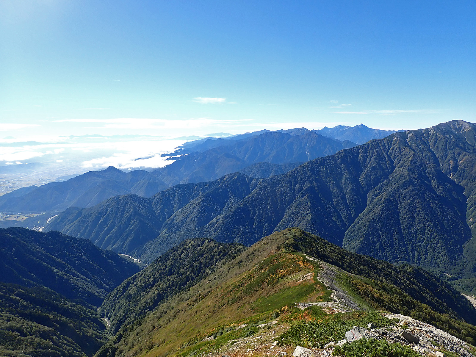 快晴が期待できたこの日、紅葉シーズンのスタートとしてこの時期としては4年ぶりとなる爺ヶ岳に出かけてきました。稜線では紅葉が少し始まっているらしいとは確認していましたが、実際には稜線の紅葉はそろそろ見頃という感じで、思った以上に楽しめました。天気も予報通り快晴で、360度の大展望を楽しむことが出来ました。