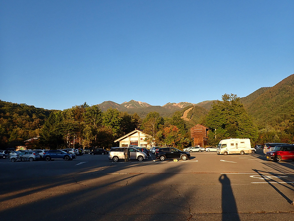 自宅を4時30分に出発して乗鞍に向かいます。そして6時10分、乗鞍高原観光センター前に車を駐めましたが、到着時点では3割ほどでしたが、戻ってきたらほぼいっぱいになっていました。道路を挟んだ反対側はまだそれほど混んでいませんでした。