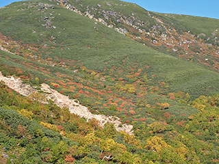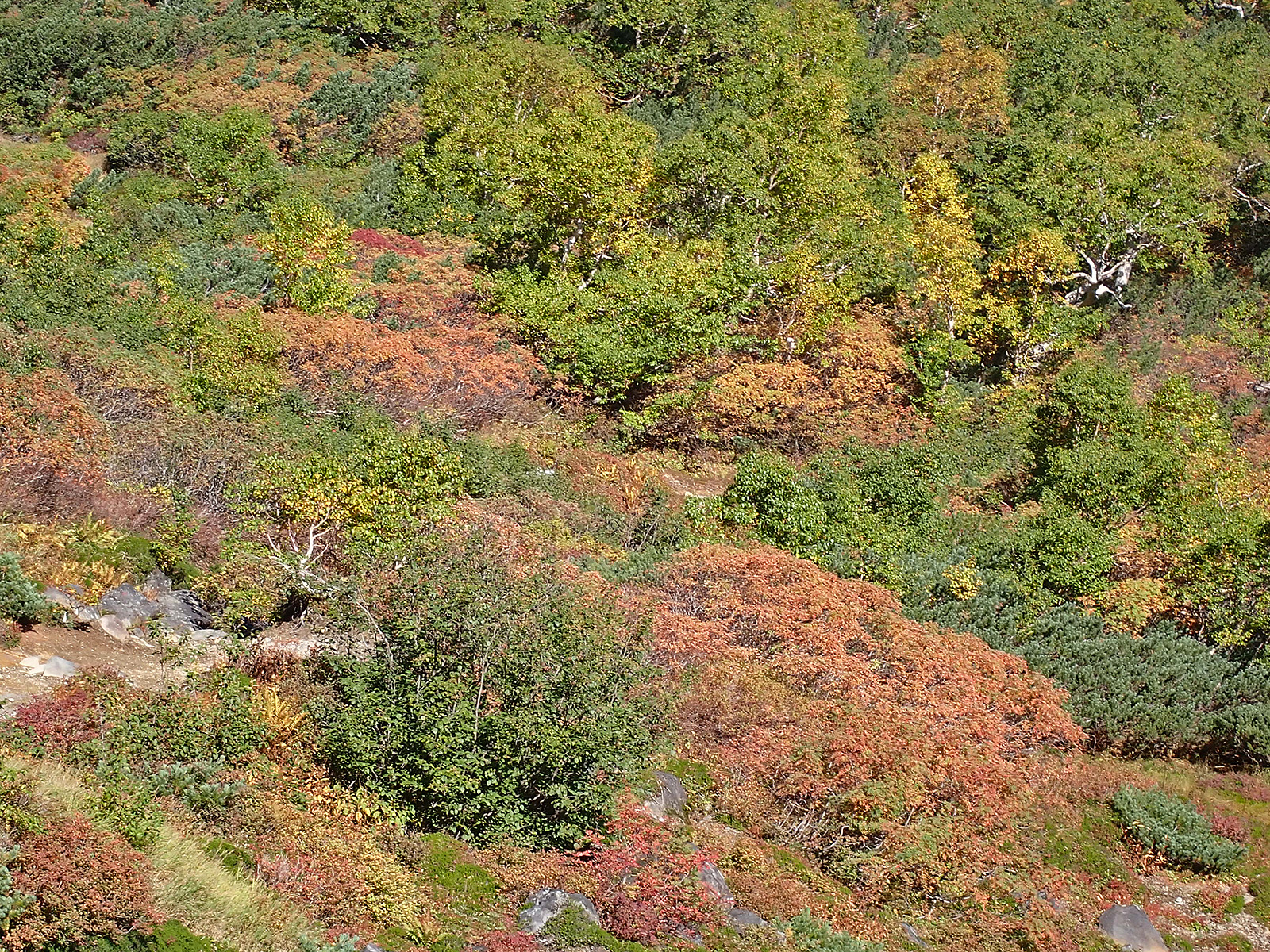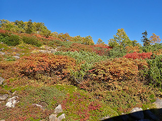 位ヶ原のナナカマドはだいたいこんな感じです。今年あまり冷え込みが無いため色付きがあまり良くないのかな。