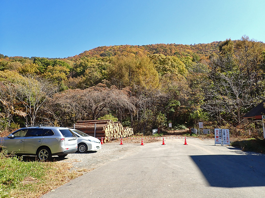 自宅を7時20分に出発し杖突峠に向かいます。そして7時40分、立石登山口近くの路肩の広い場所に車を駐めました。その場所の奥は林業の作業が行われているようで、数台分しかスペースがありませんでした。林道を進んだ先にも数台ほど路肩に駐められます。 杖突峠登山口は50台ほどは駐められると思いますが、今日は帰りに通ったらかなり埋まっていました。ちょうど守屋山で紅葉が楽しめる時期になりましたので(^^)。