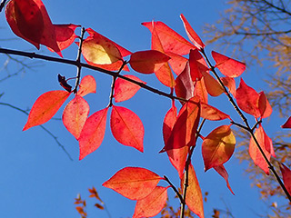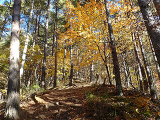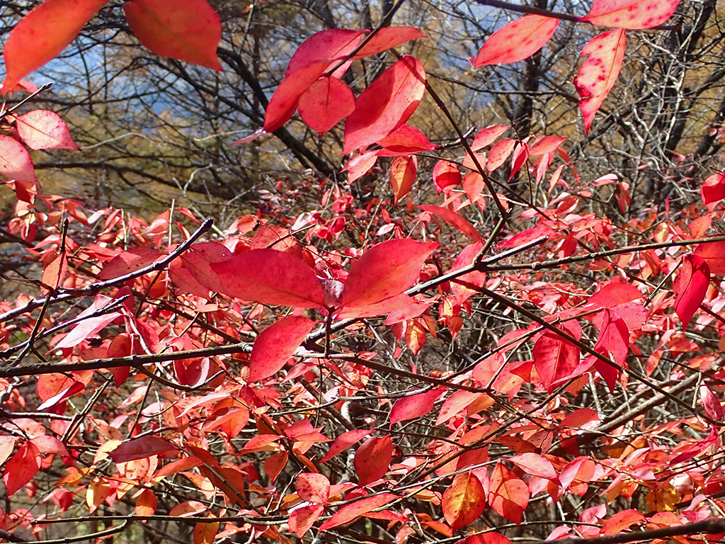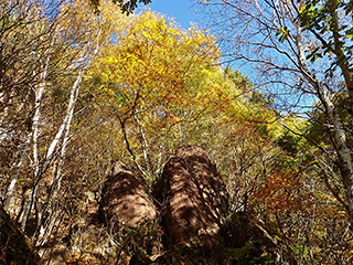 休憩後10時8分、紅葉を楽しみながら東峰に戻ります。