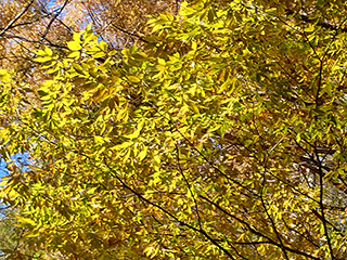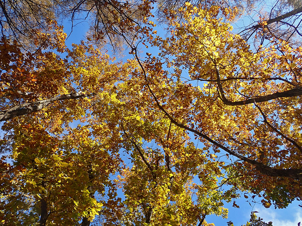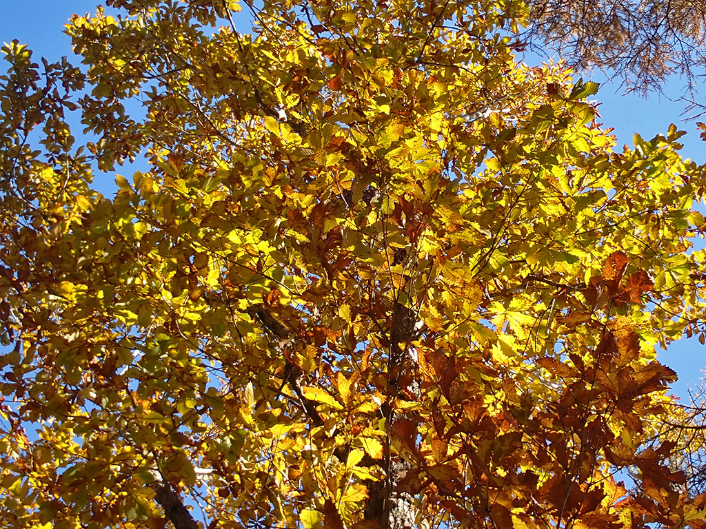 登山口はほぼ緑でしたが、見上げると時々きれいな黄葉が。