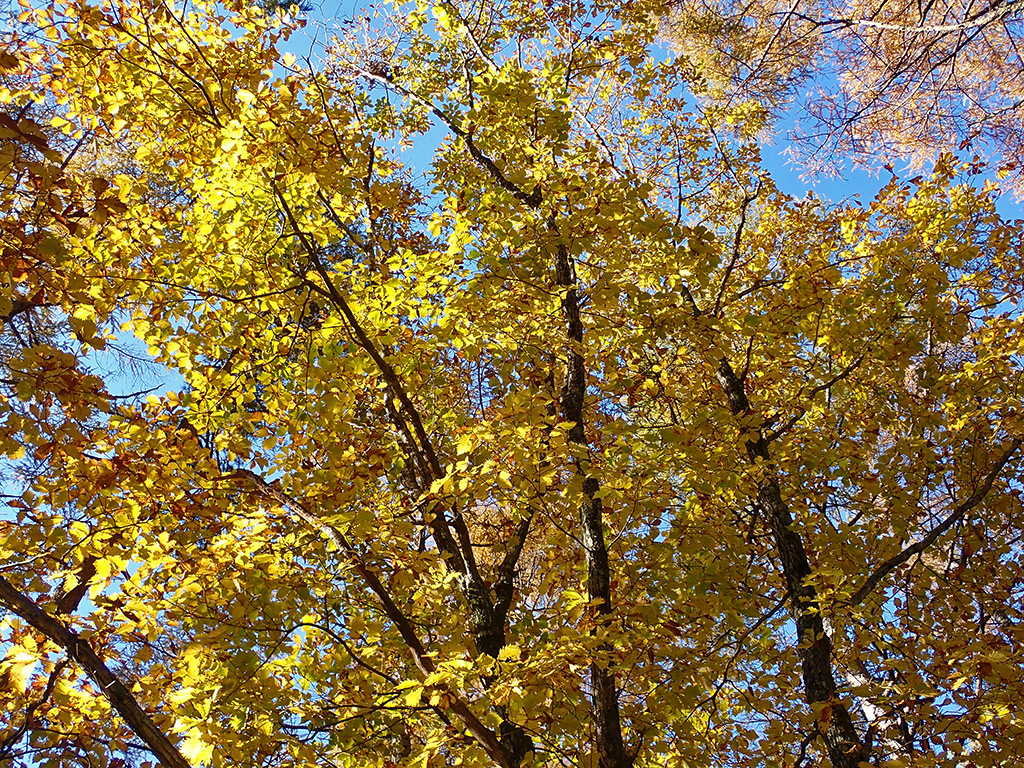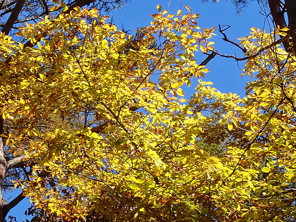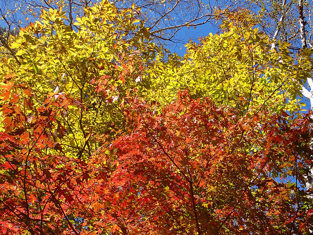 もみじもまだ黄色。結局立石ルートできれいな赤い紅葉は今回はあまり見かけませんでした。南面なのでもう少し遅い時期が良いのかな。杖突峠側の方が赤い紅葉が多かったです。