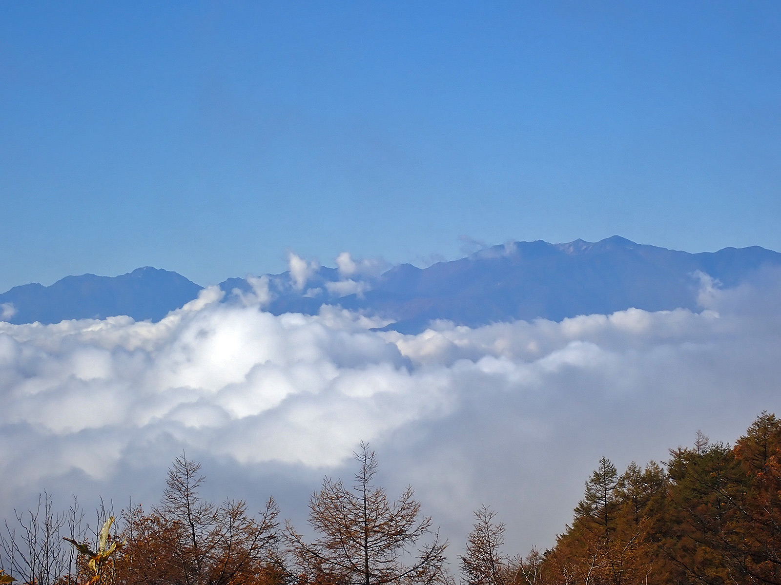 北アルプス方面。穂高が少しだけ見えていましたが、他は雲海が邪魔して見えませんでした。もっと高い山だったら北アルプスも見えたのかな?。
