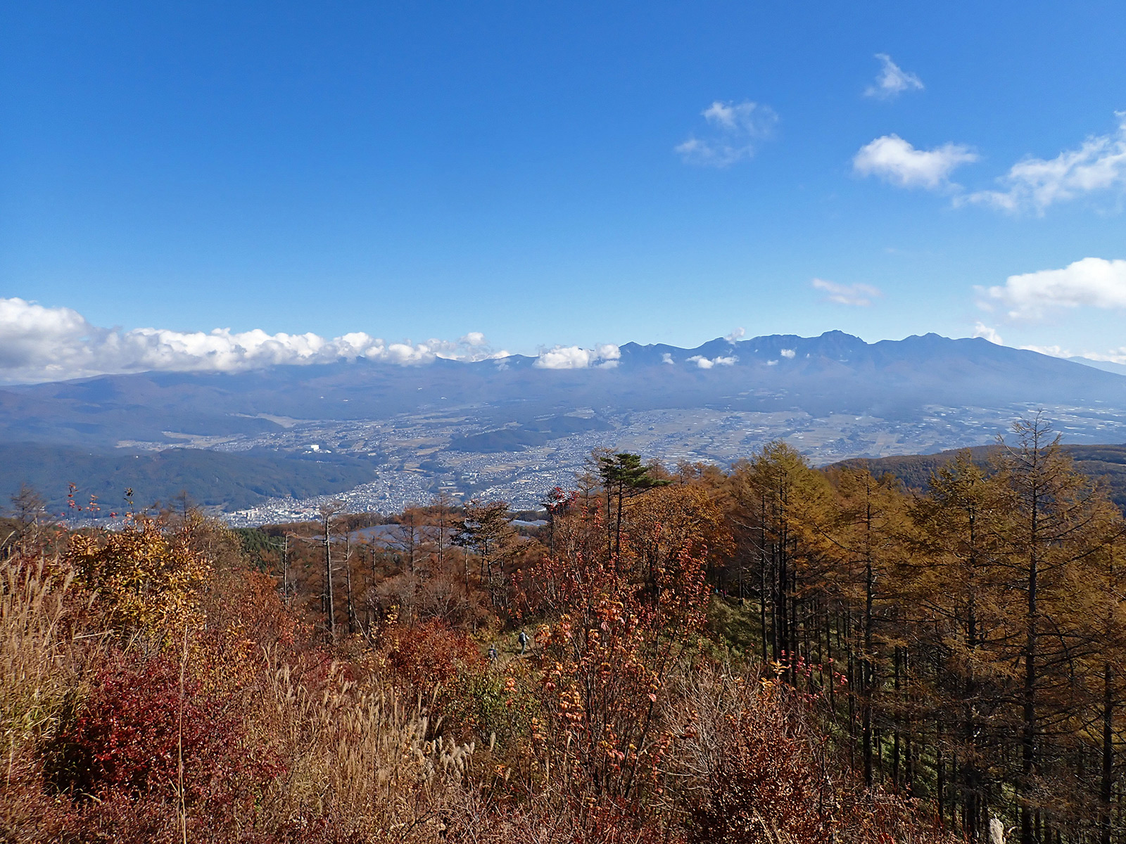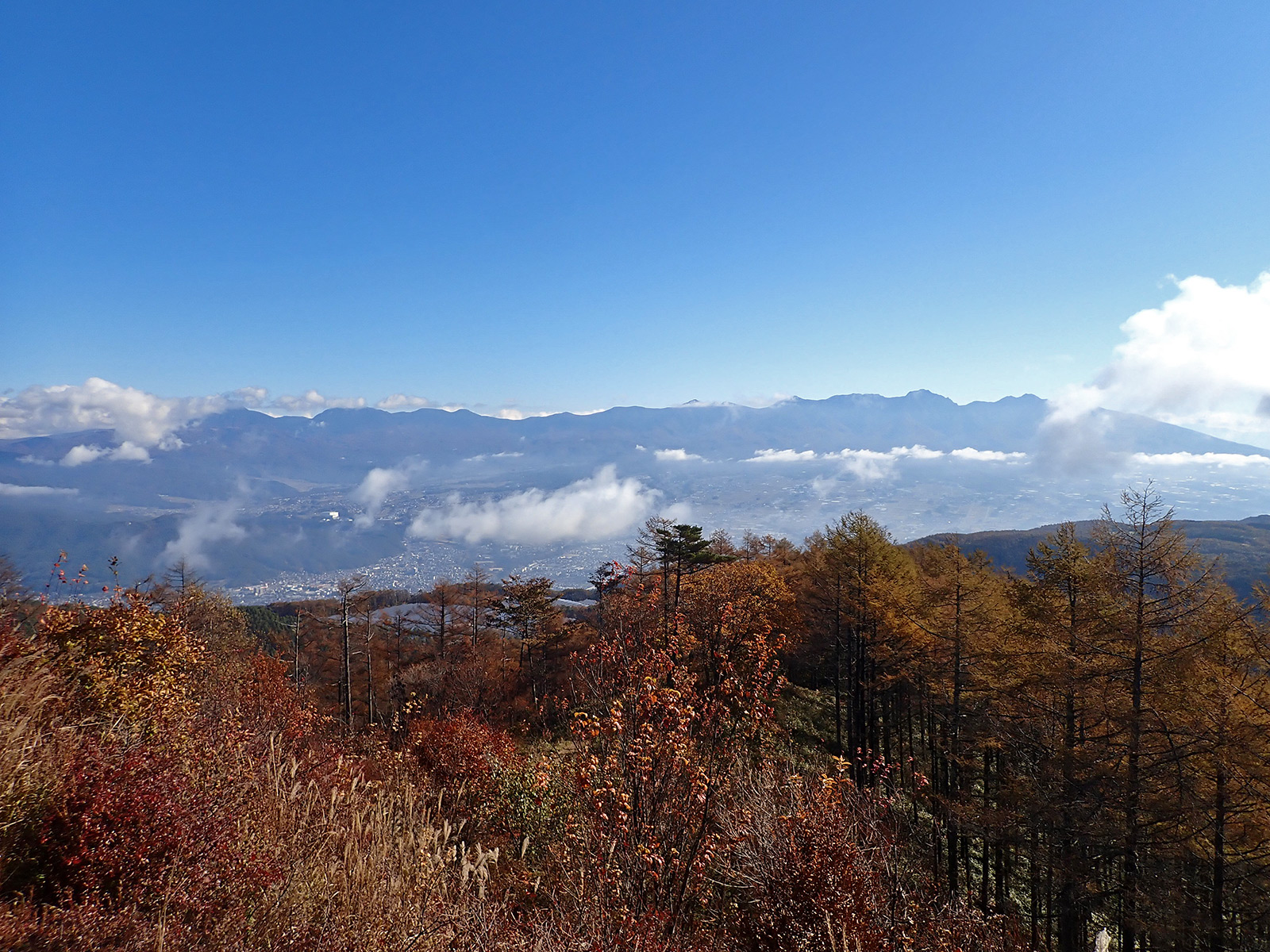 紅葉ですが、立石口は一部で色付き始めながらほぼ緑、立石あたりから見頃の紅葉が徐々に出てきますが、結局山頂がちょうど紅葉のピークという感じでした。杖突峠側の方が赤く色付いたもみじが多かったです。