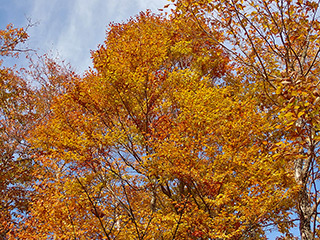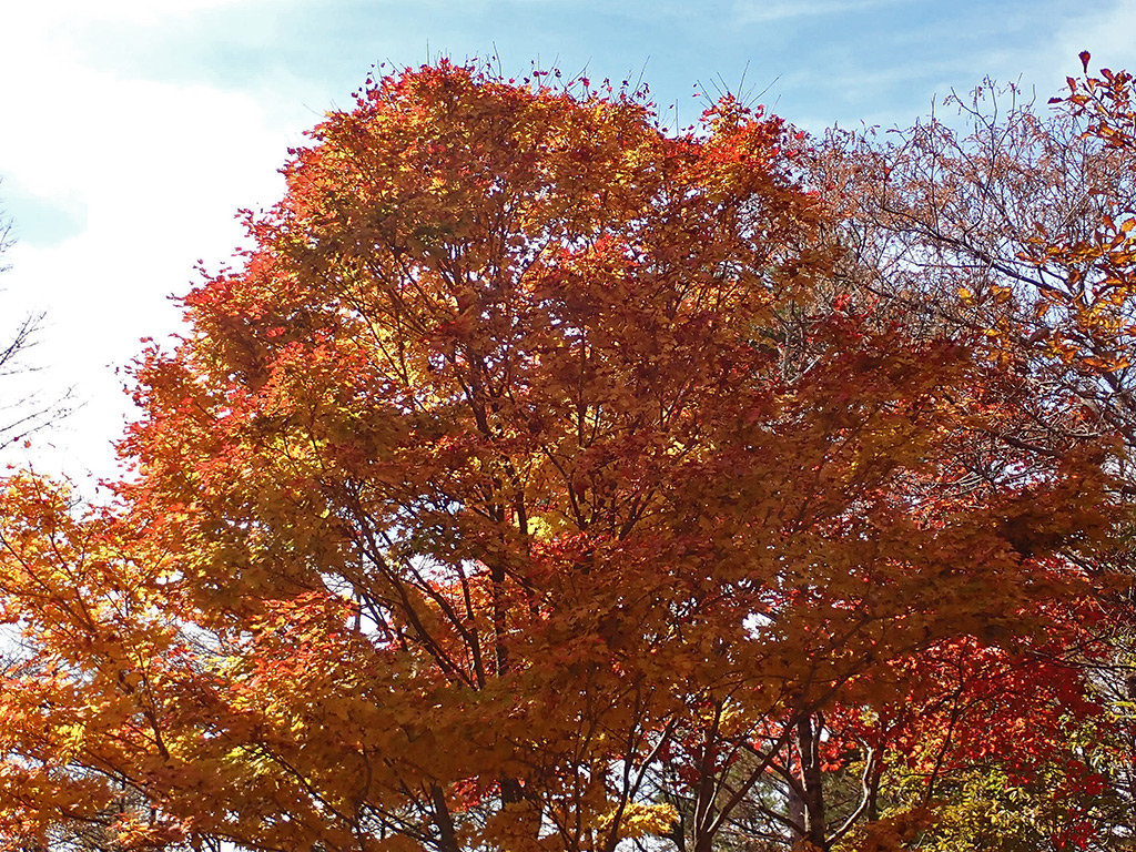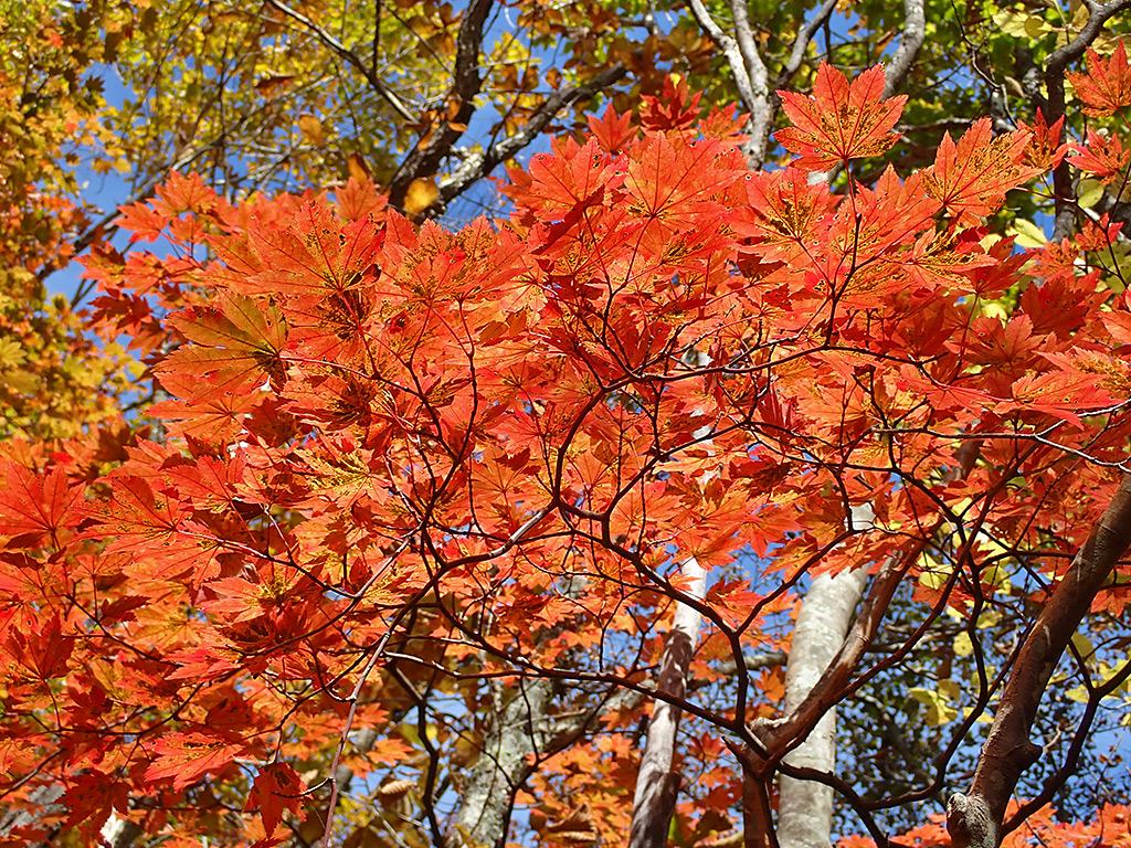この頃、ちょうど上級に青空が。日差しもあり、紅葉が輝きます。