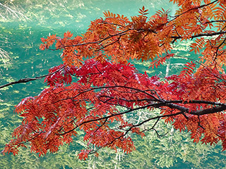 池の畔の紅葉。
