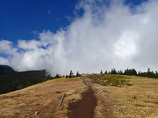 双子山稜線に出ました。東側から真夏の様にガスが湧き上がっています。