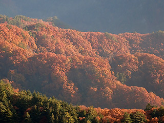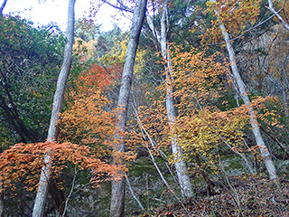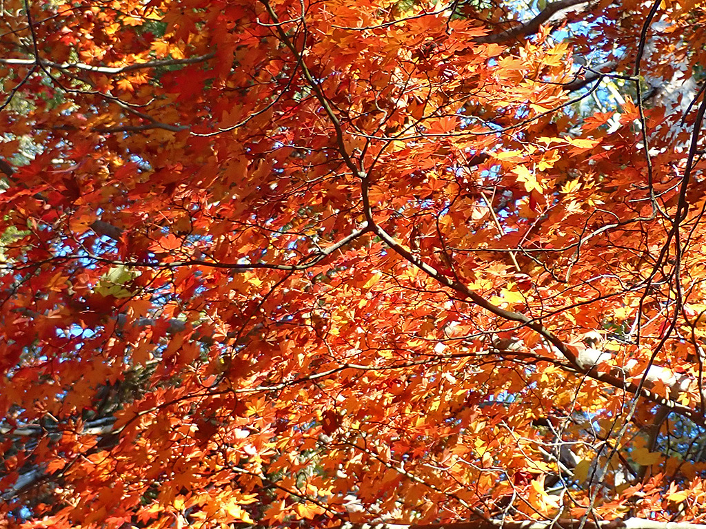 だいぶ降りてきました。眼下の斜面の紅葉が本当に見事です。